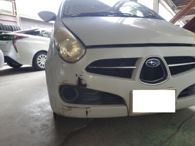 スバルR2のフロントバンパー交換+ヘッドライト修理|桐生市の板金塗装事例