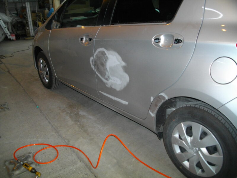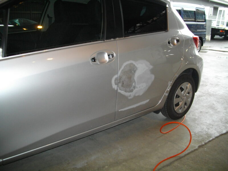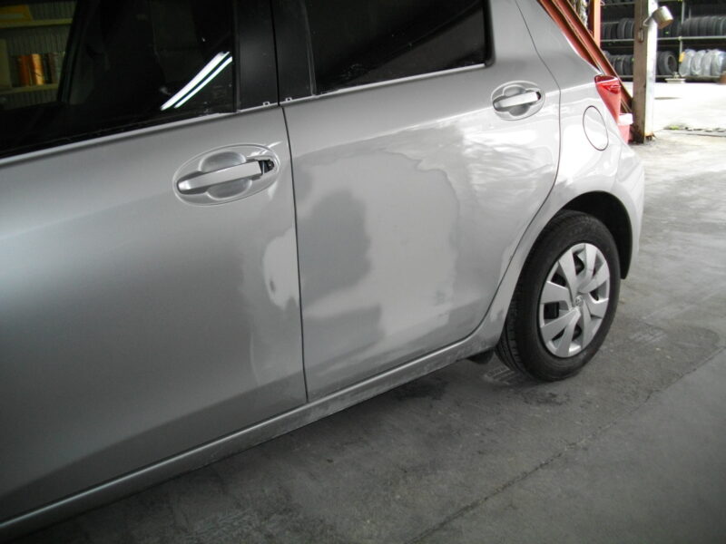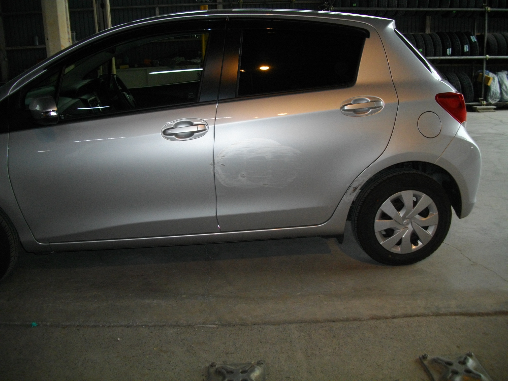 【みどり市のお客様】トヨタ・ヴィッツの左側面ドアのキズ・へこみ修理を交換ではなく鈑金対応!