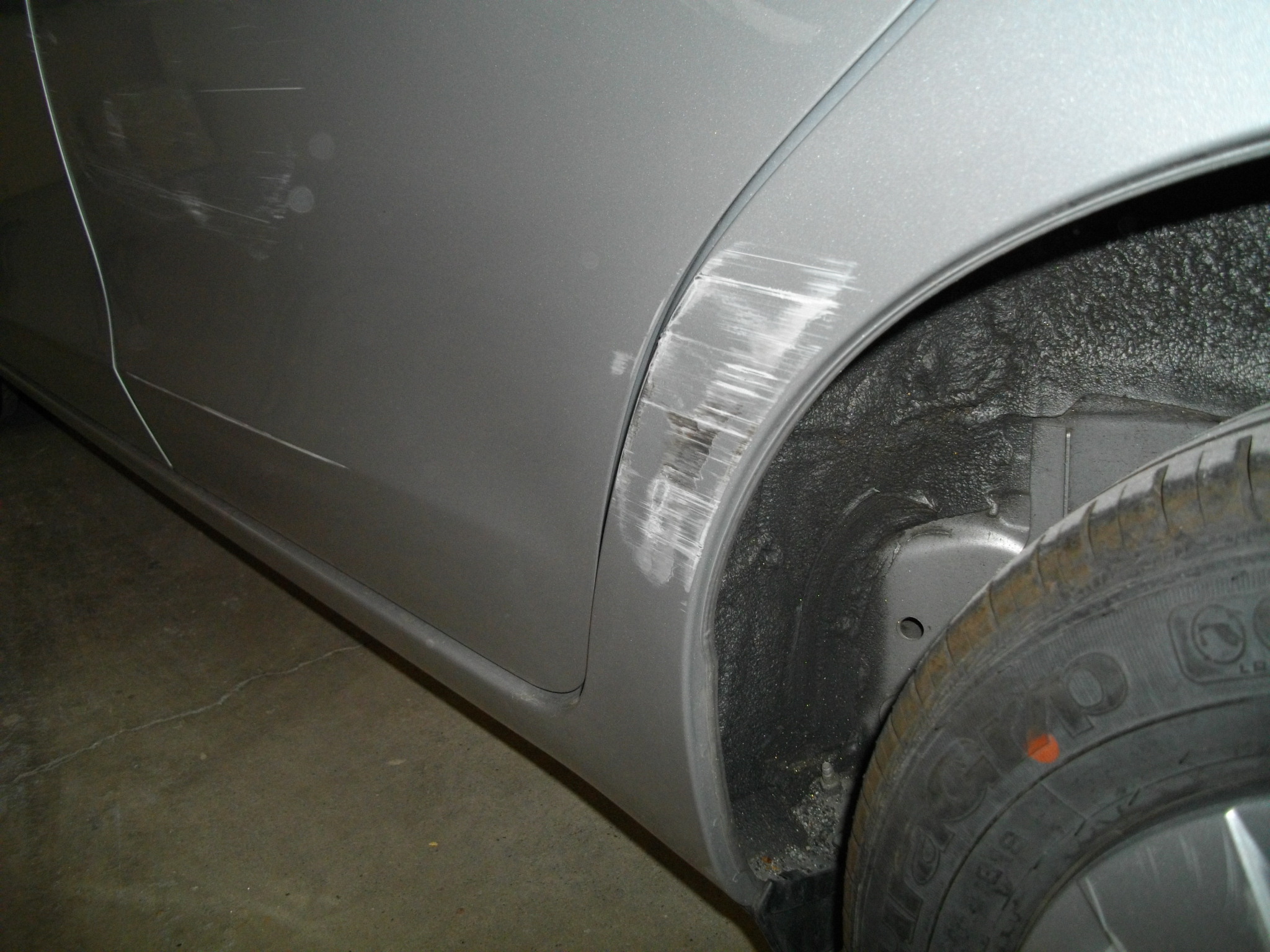 左ドア2枚+クォーターパネルの広範囲なへこみも「鈑金」で対応