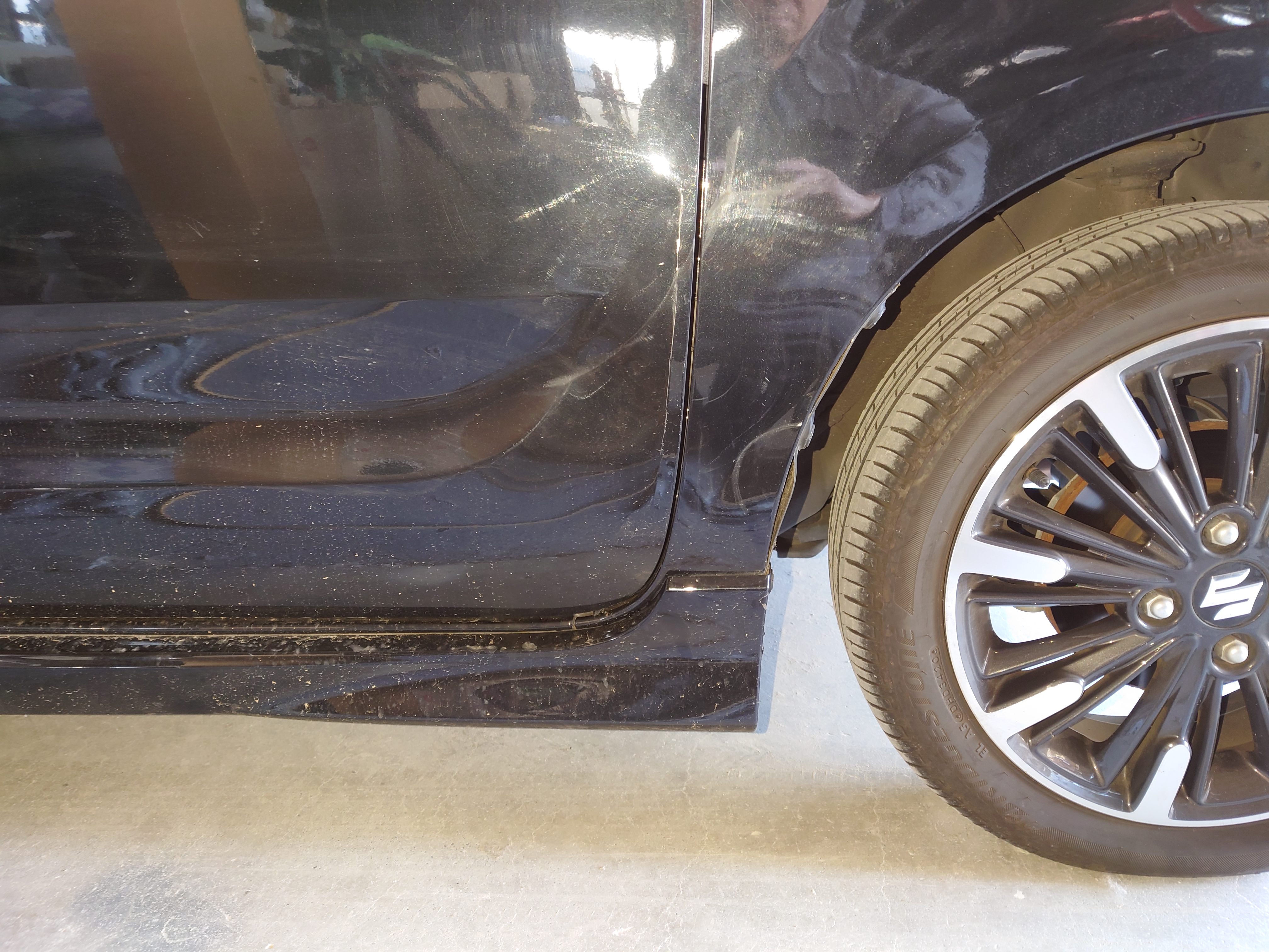 スペーシアの右フロント周り修理|ドアパネルとフェンダーの広範囲鈑金。内張り脱着まで丁寧な仕上げ