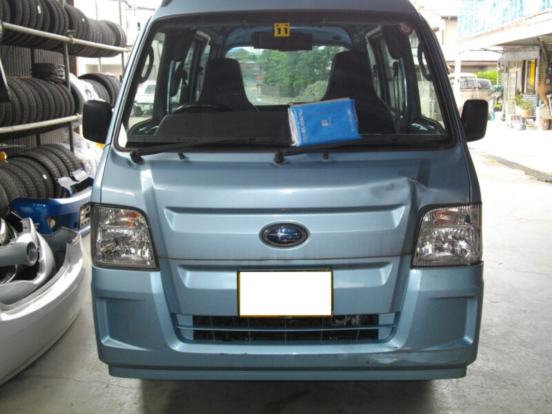 【スバル サンバー修理】フロントパネル交換とピラー修正!ガラス脱着からナンバー再交付まで一貫対応|桐生市のお客様