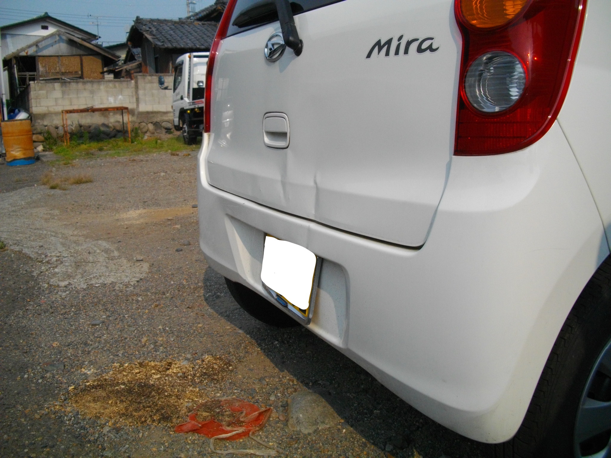 【ダイハツ・ミラ 鈑金修理】バックドア・バンパー交換から内部骨格の深部まで修復。2コートソリッドで新車の艶を再現|太田市のお客様