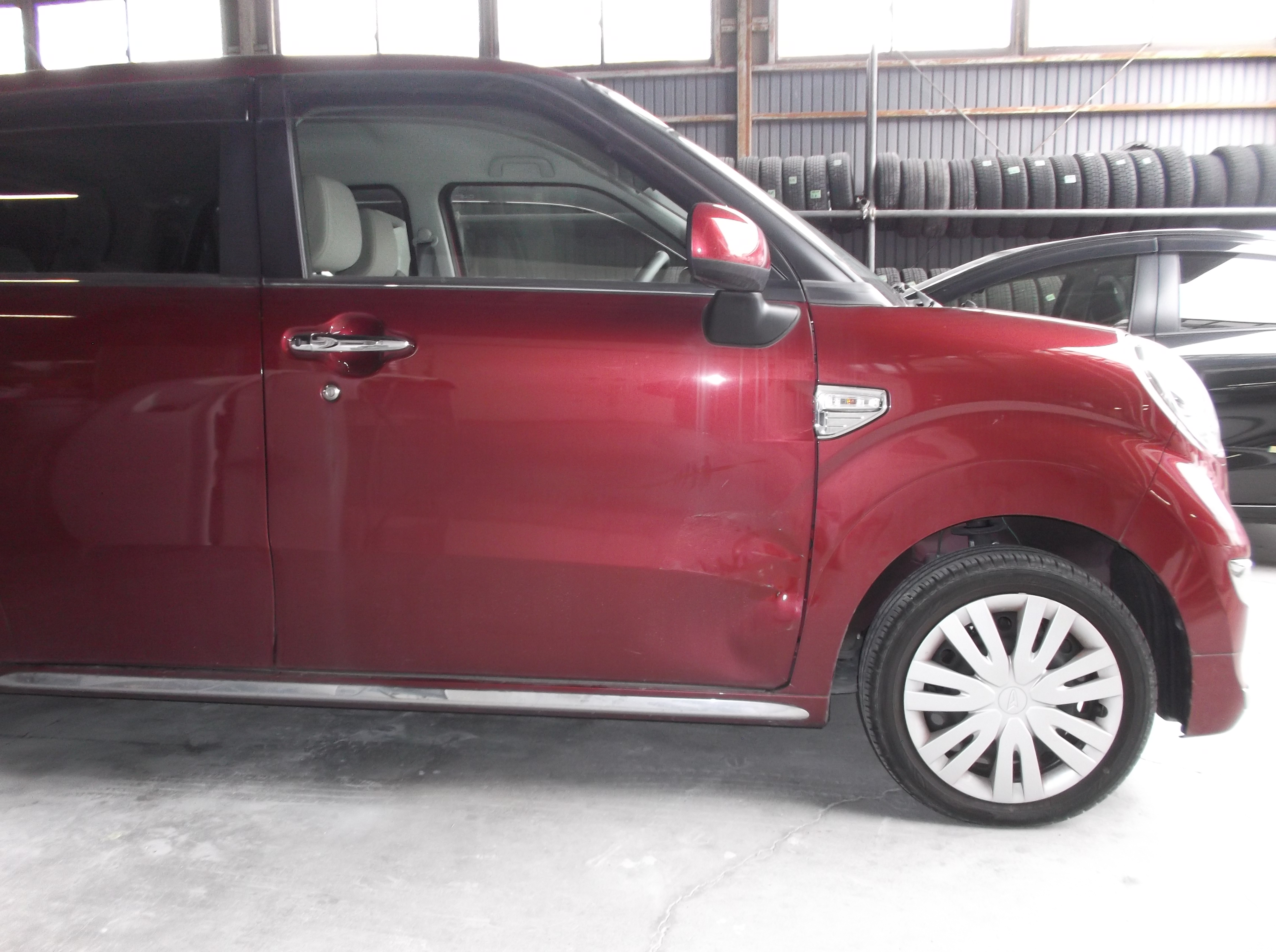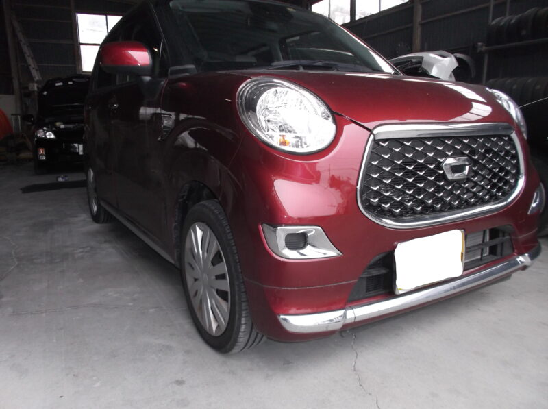 ダイハツ キャストスタイルの板金、ピラー修理、ドア交換、2コートパール塗装まで。自社ブース完備・フレーム修正機導入・2K塗料使用。ディーラー品質を納得価格で提供。