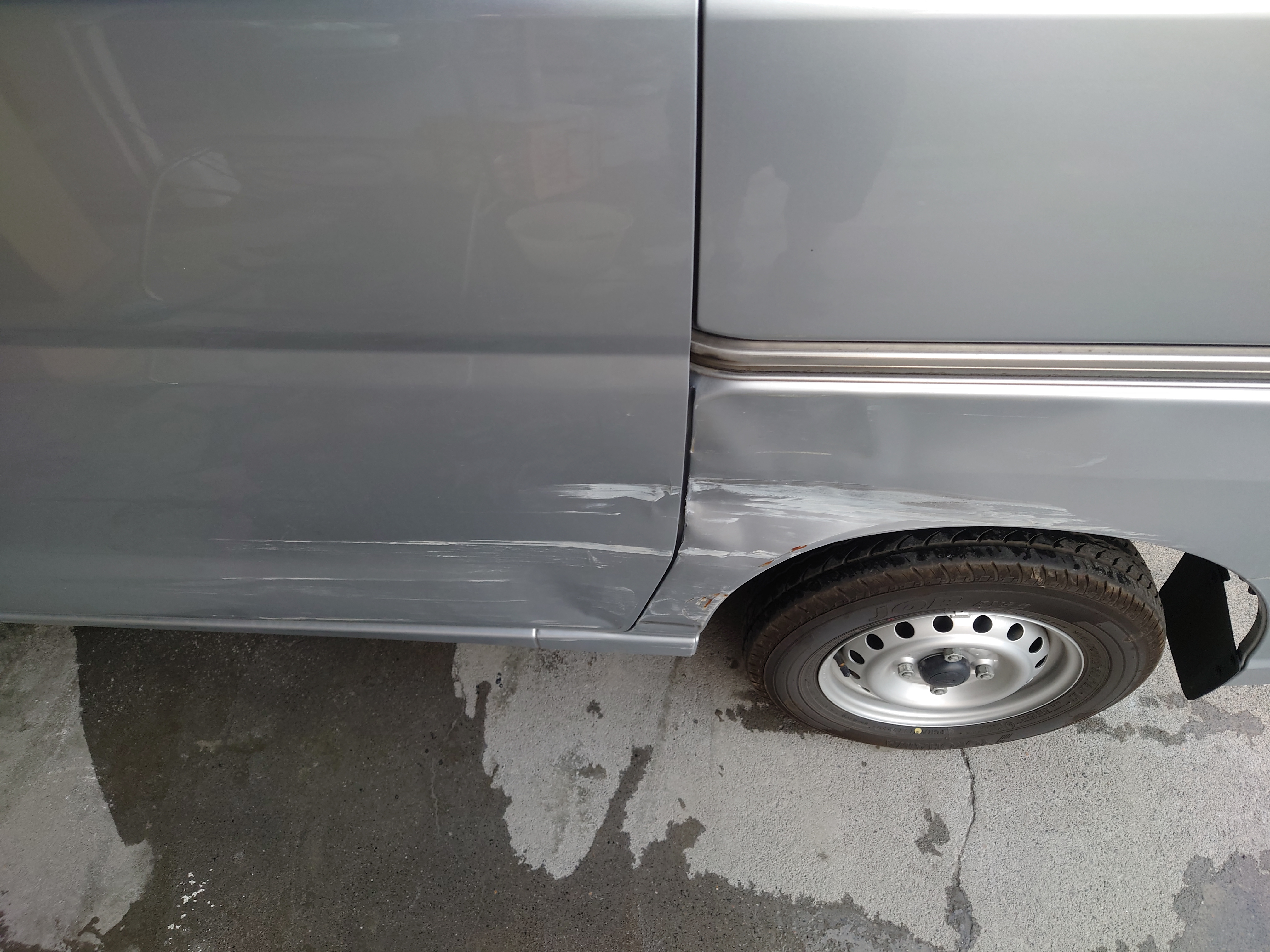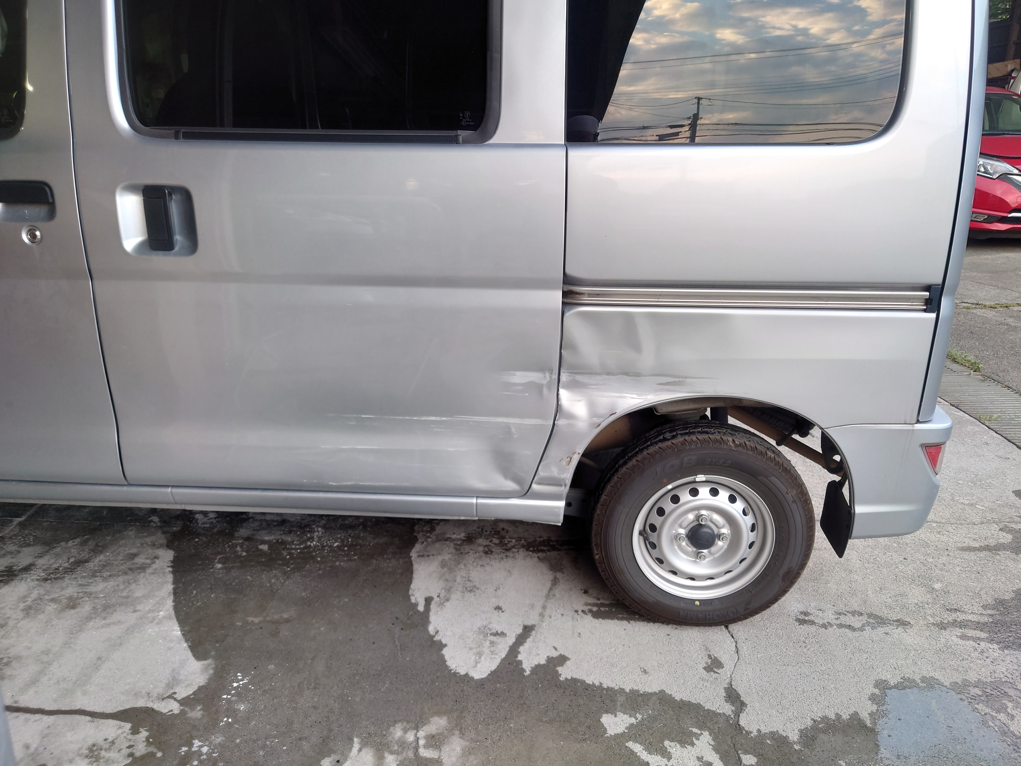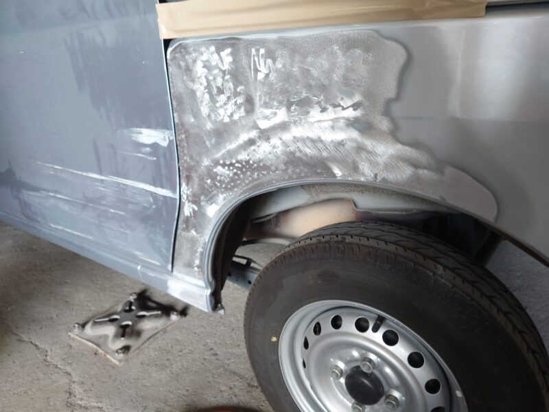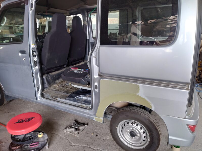【ダイハツ ハイゼット修理】左リアドア交換とフェンダー板金塗装|伊勢崎市のお客様