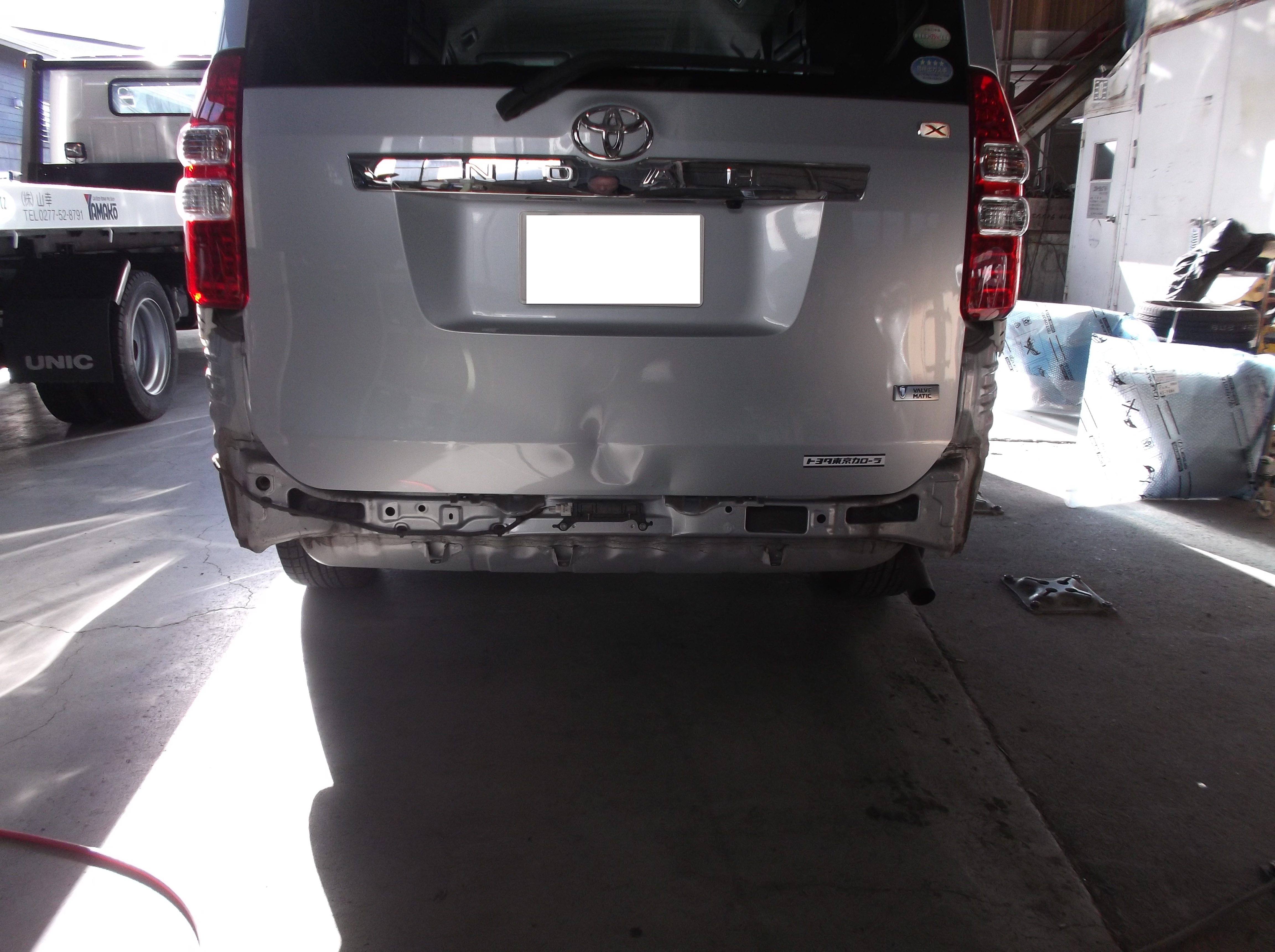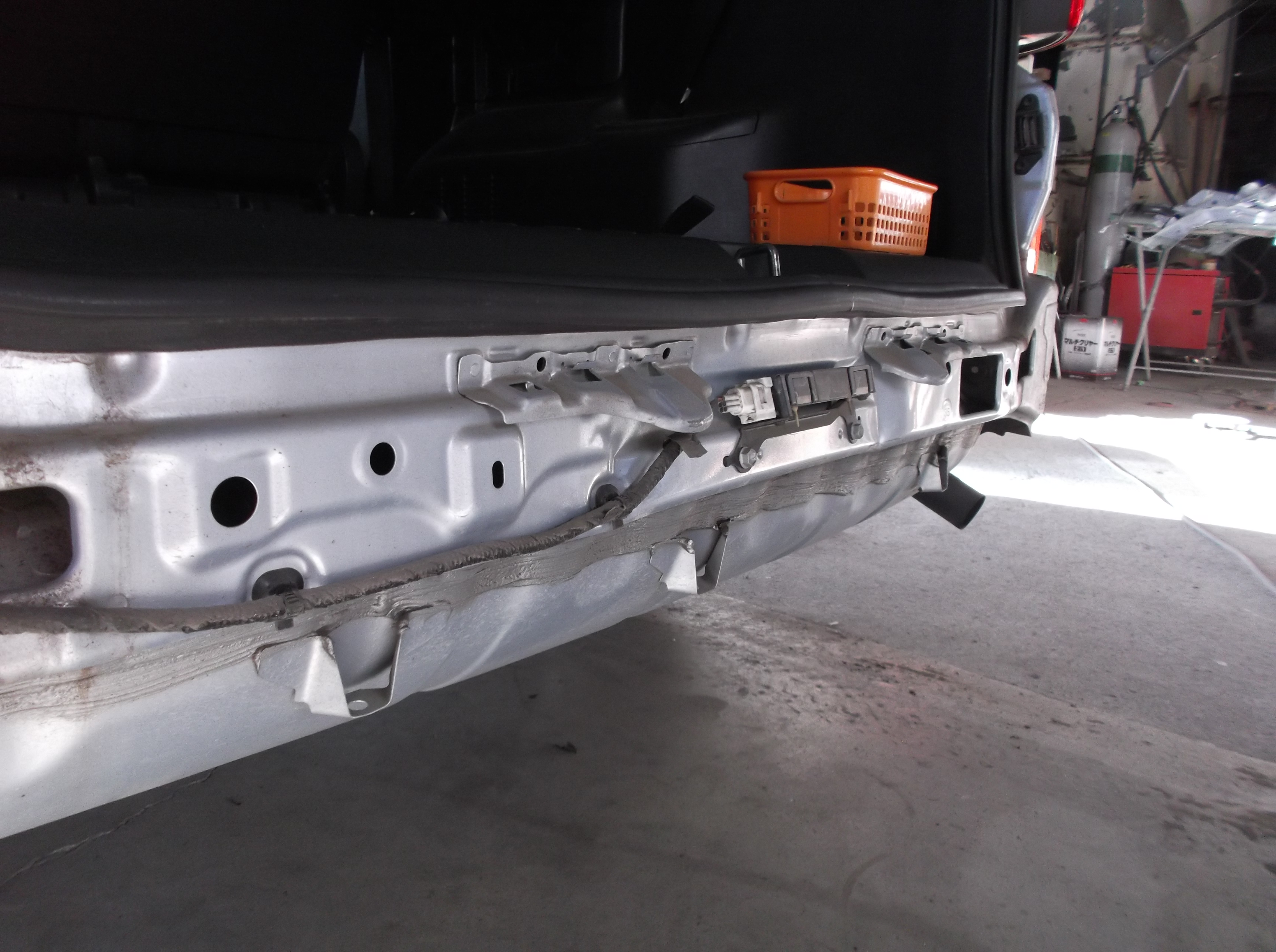 ノアのリヤ周り修理|バックドア取替とガラス脱着。ディーラー品質の板金塗装を提供!