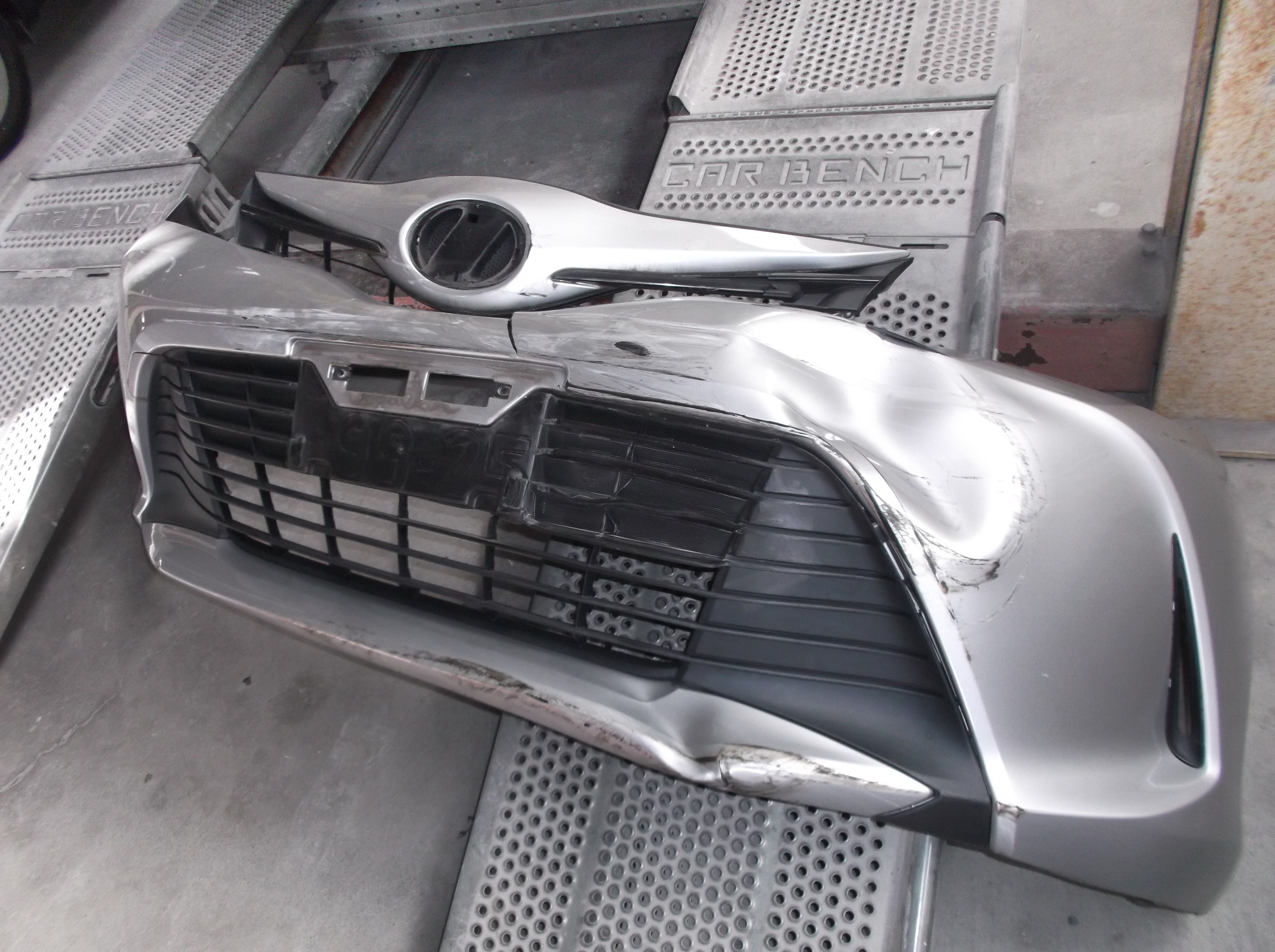 1. フロント全分解: バンパー、グリル、ライトを外し、リインホース等の深部まで損傷を確認。