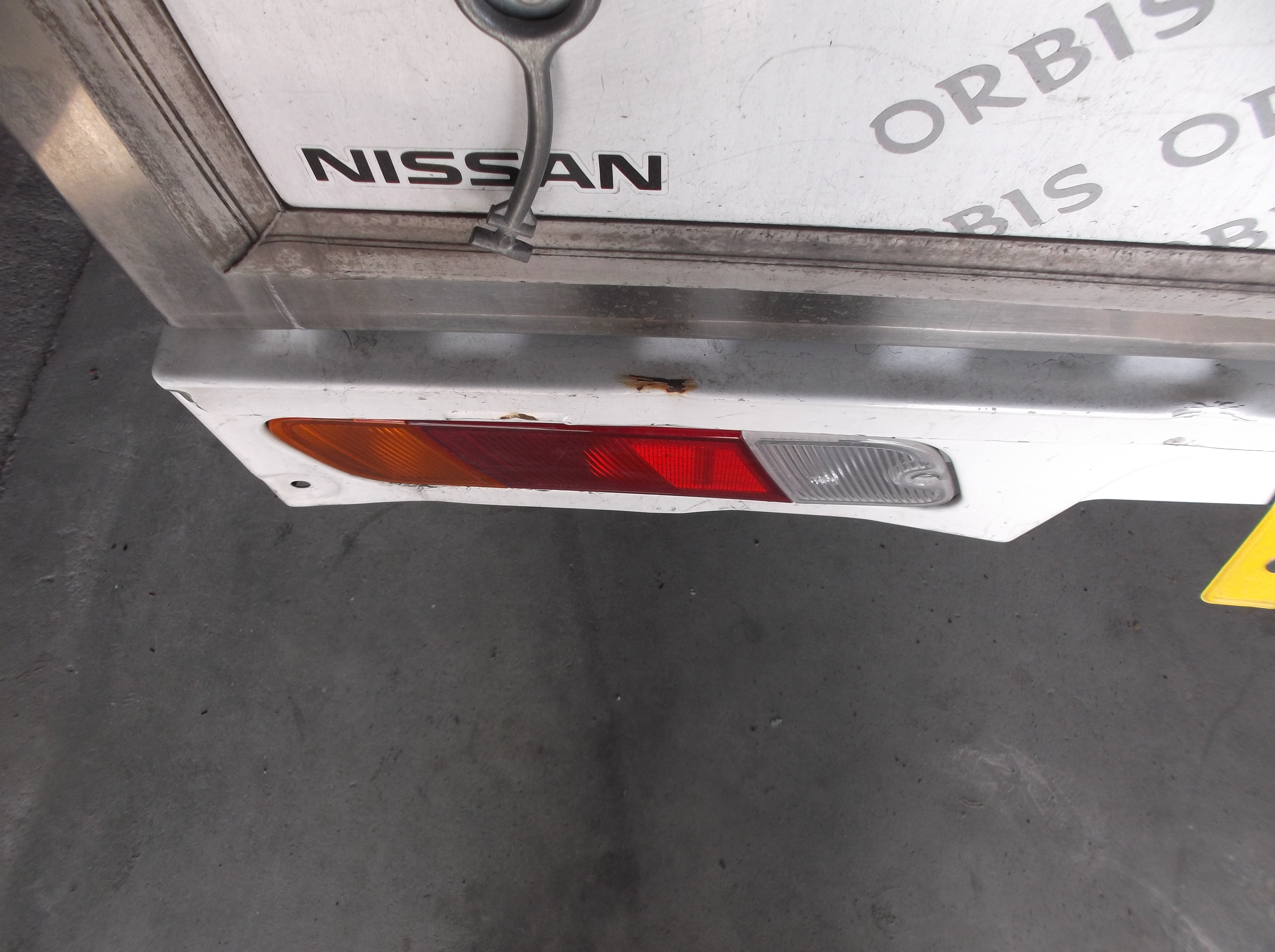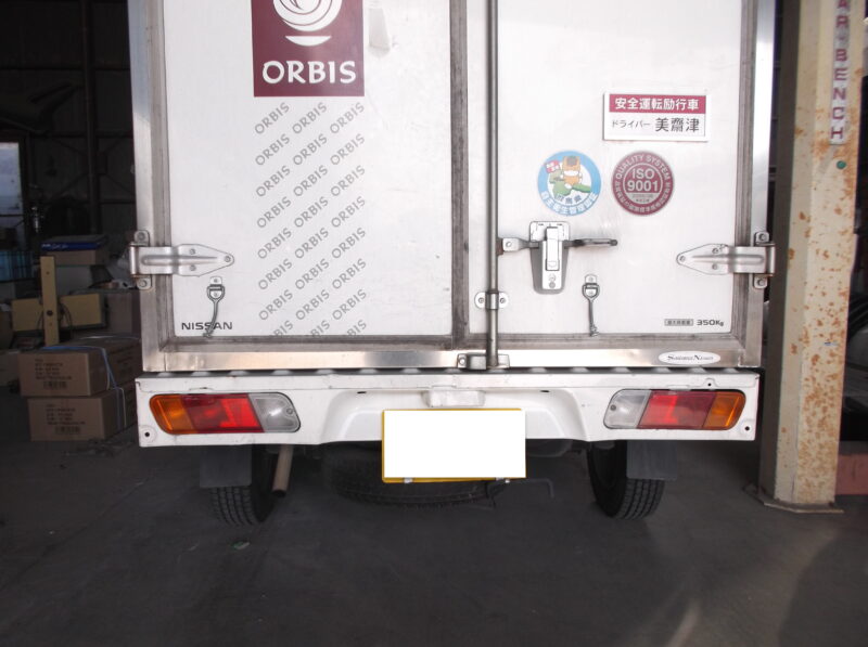 ニッサン・クリッパーのリヤ事故修理。粉砕した右リヤコンビランプを新品交換し、押し込まれたフロアセンターパネルとテールボルスターを精密板金。2コートソリッド塗装で仕上げ、働く車としての強度と美観を完璧に復元しました。