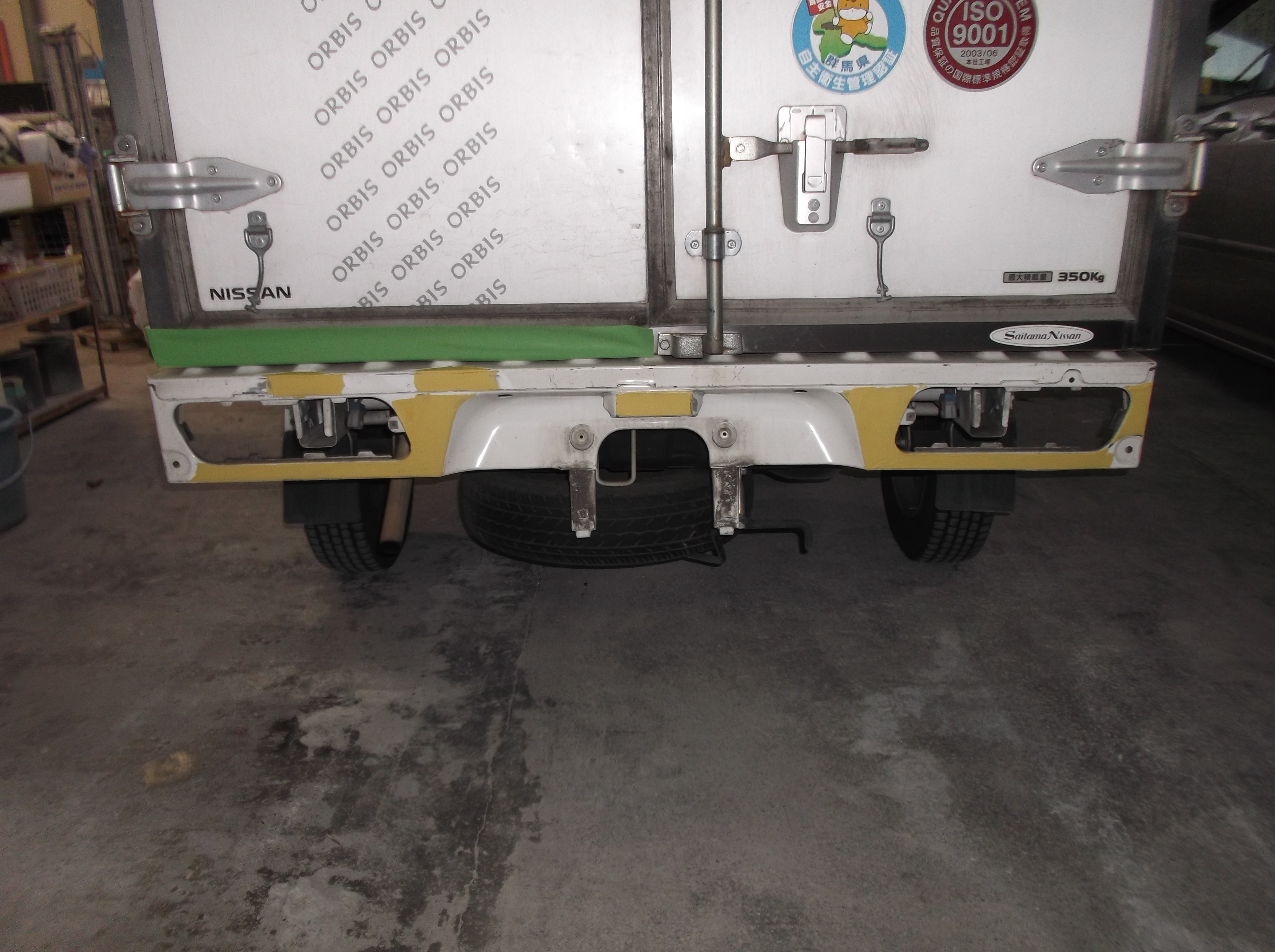 ニッサン クリッパーのバック事故修理、フロアパネル板金、テールボルスター修正、2コートソリッド塗装まで。自社ブース塗装・商用車スピード対応・2K高品質塗料使用。働く車のパートナーとして、地元太田市で40年の信頼。