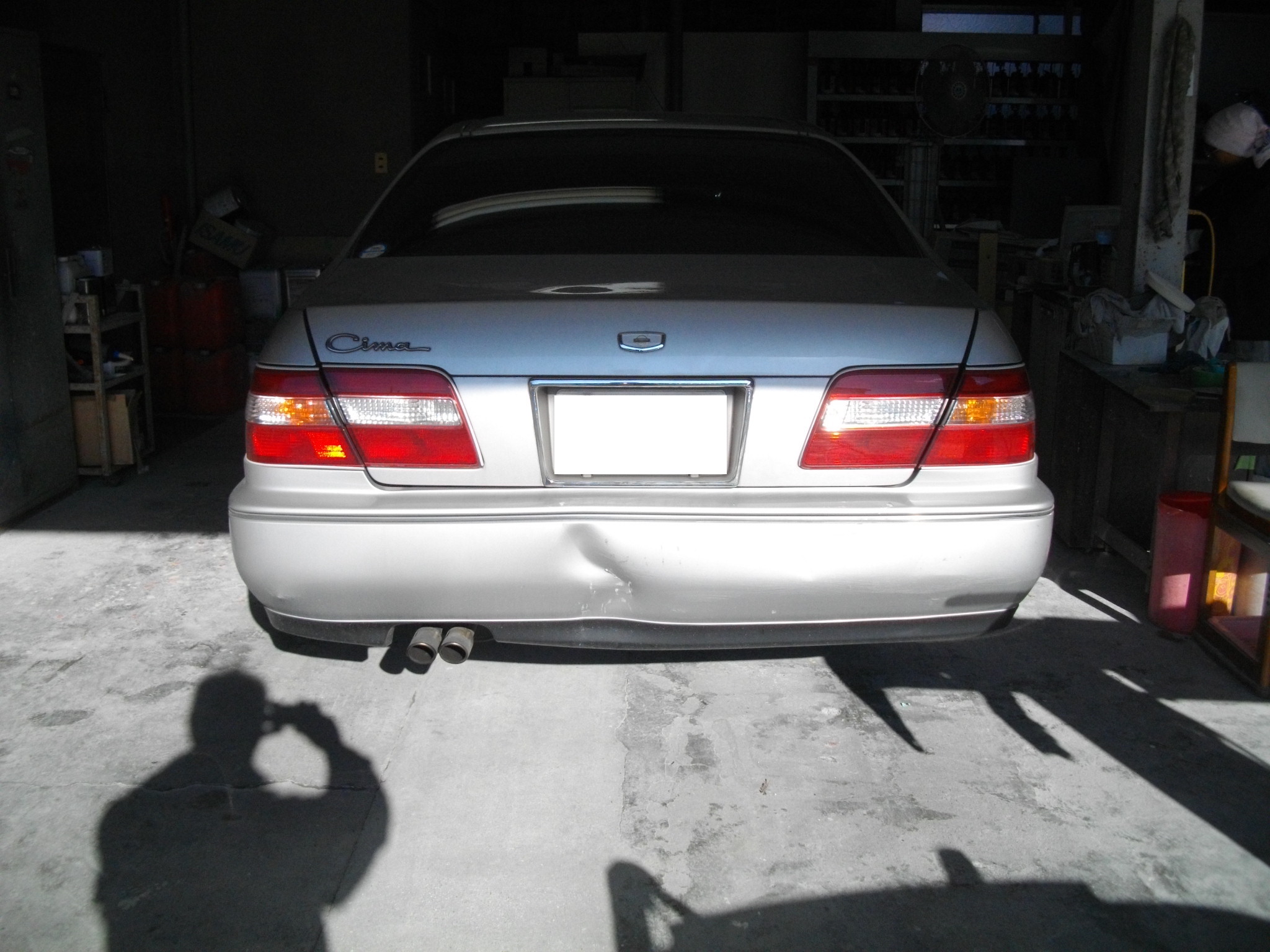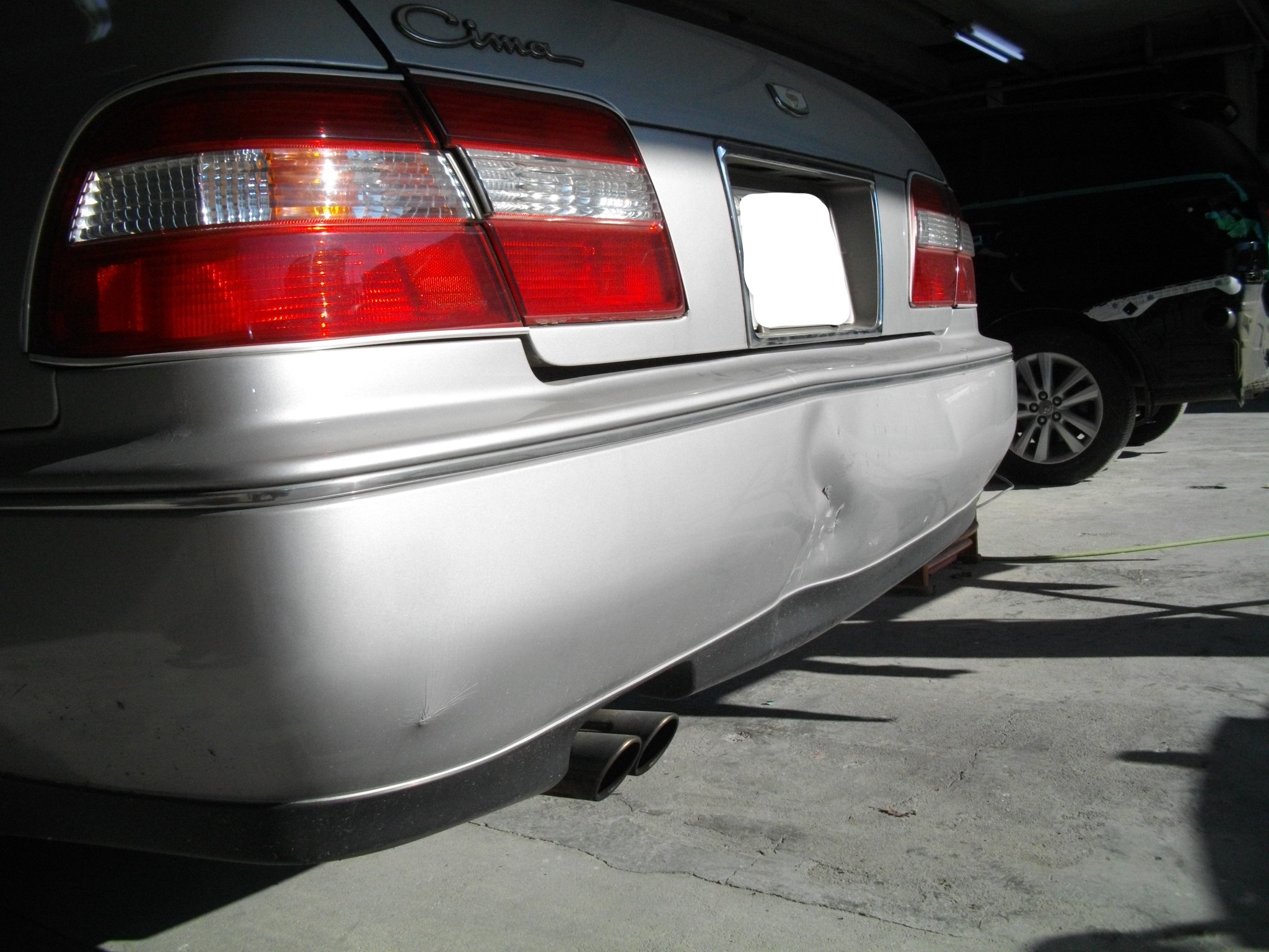 桐生市で事故修理もお任せ下さい|シーマのリア廻りを骨格修正と鈑金塗装で復元