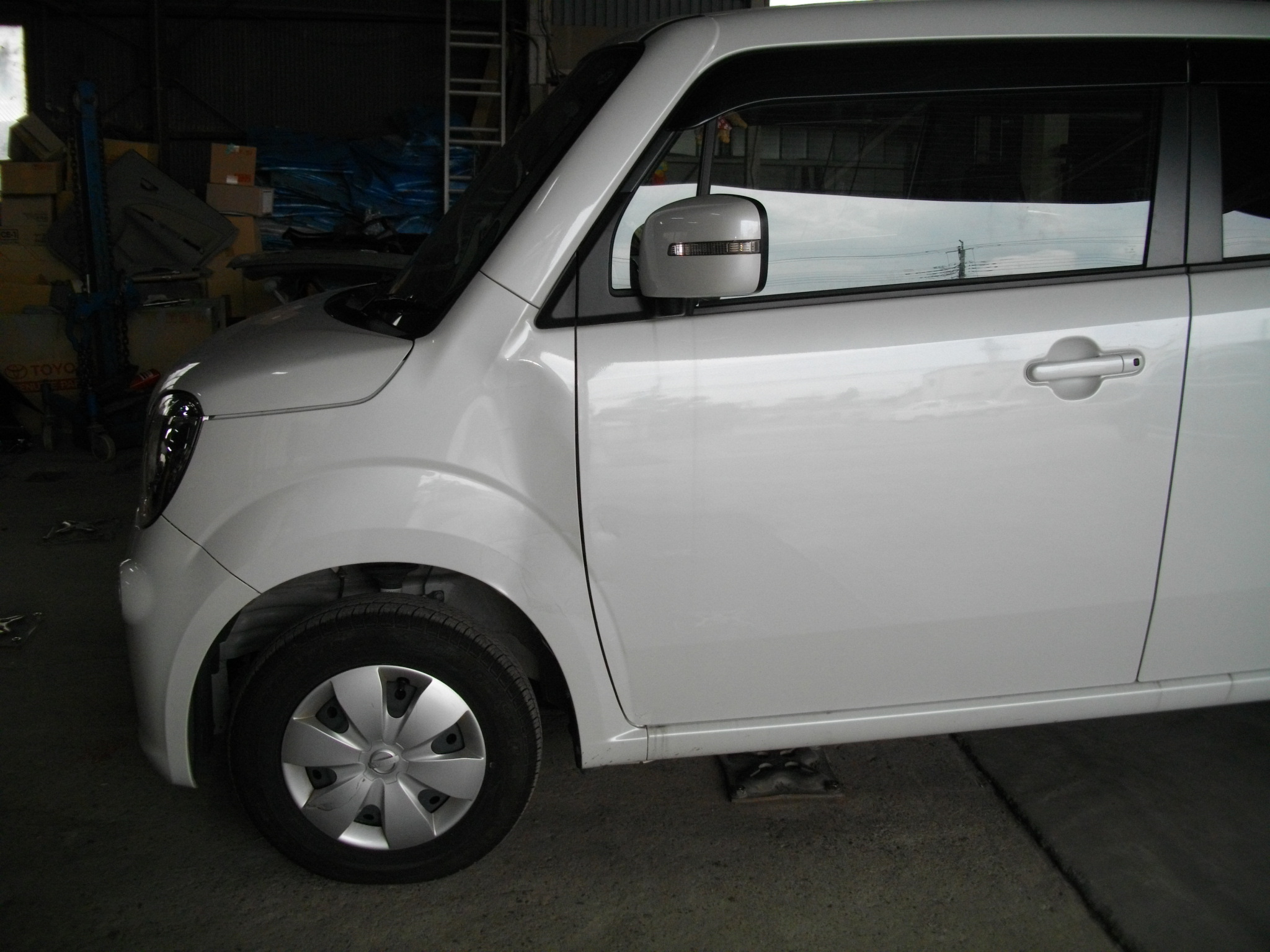 【ニッサン モコ修理】右フェンダー取替と左ドア板金。2K塗装で「色味の差」を残さない色合わせ|太田市のお客様