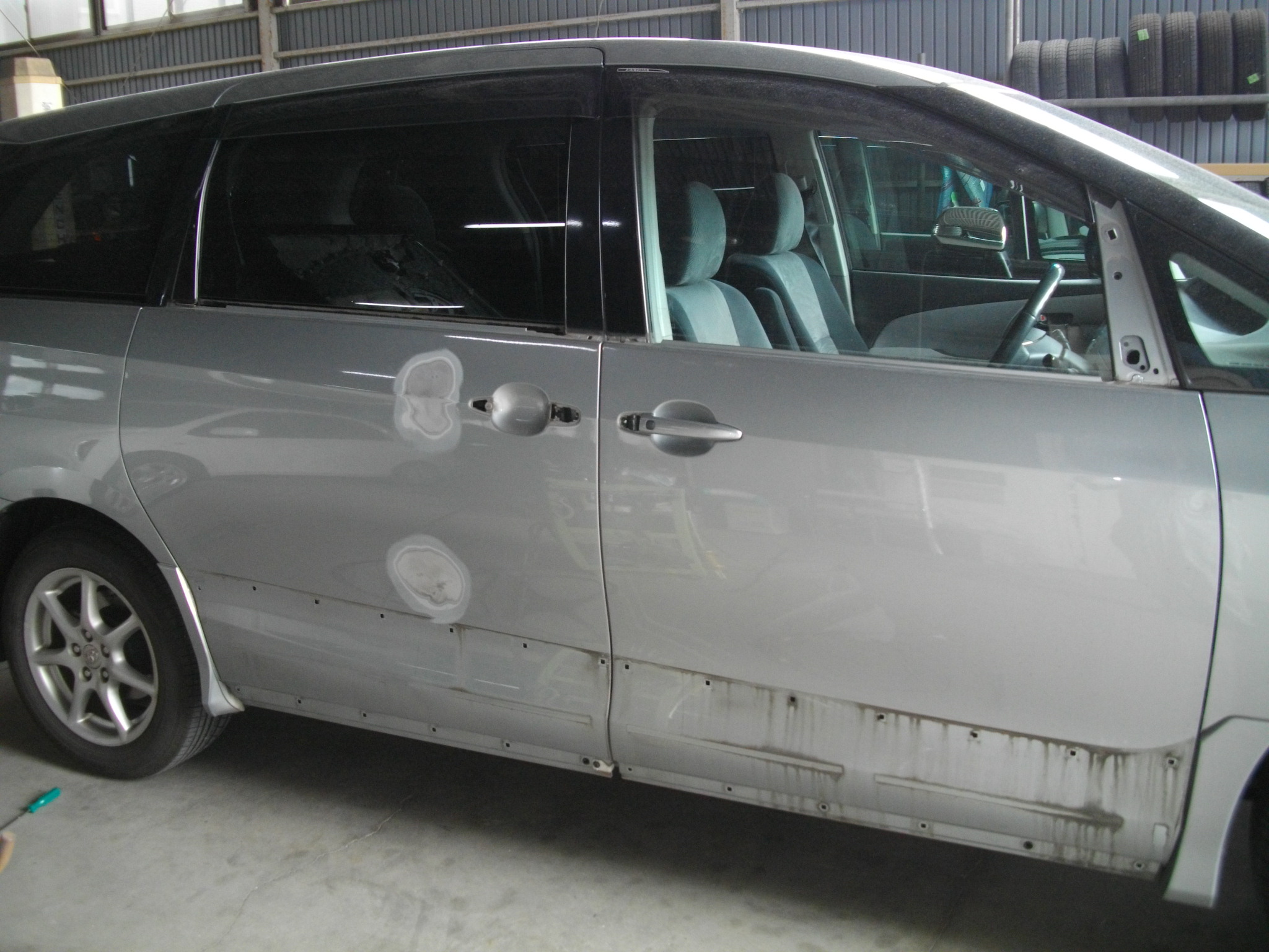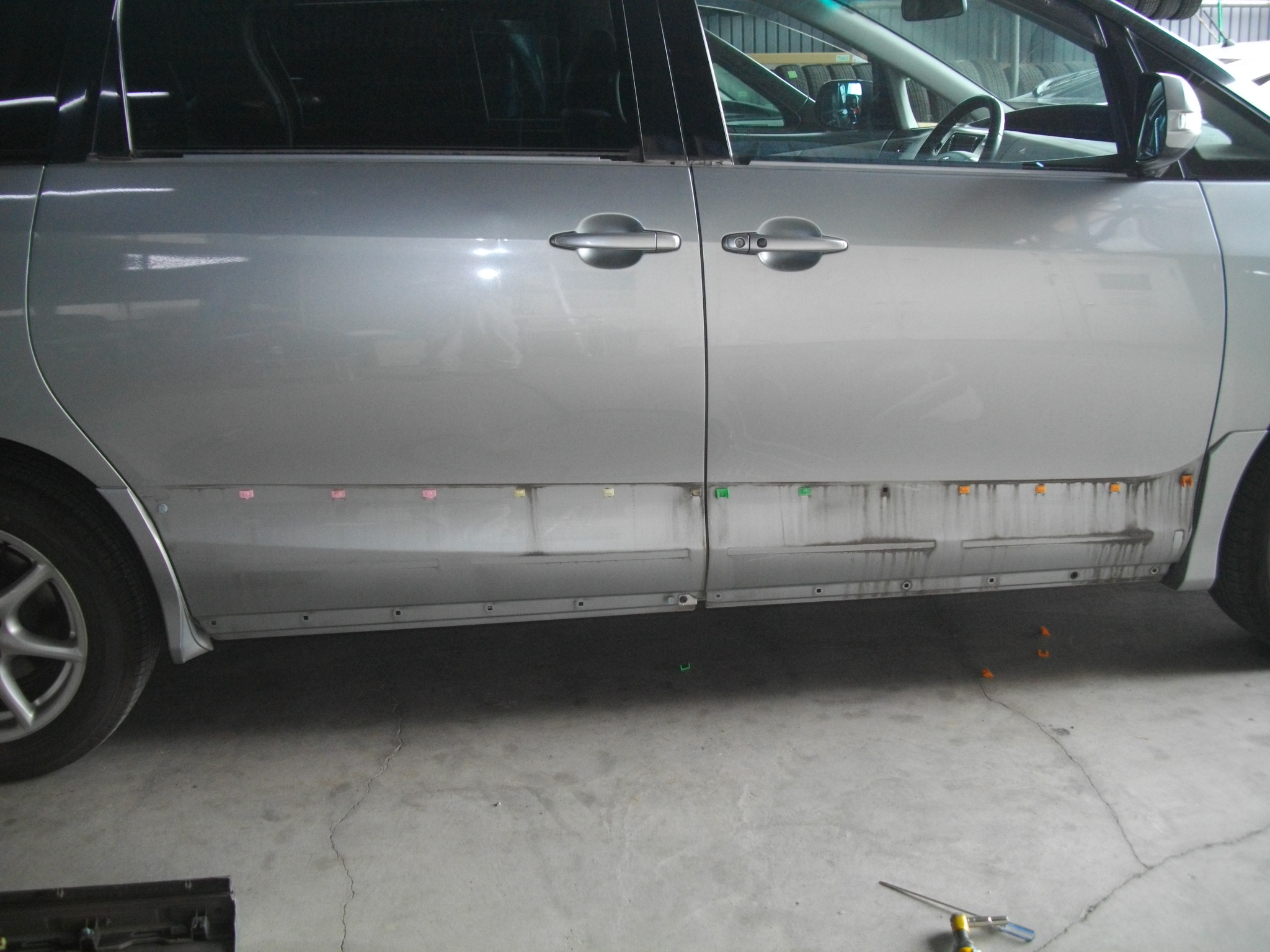 【ミニバン修理】太田市のお客様|エスティマのスライドドア傷・へこみ修理|交換せずに費用を抑える!