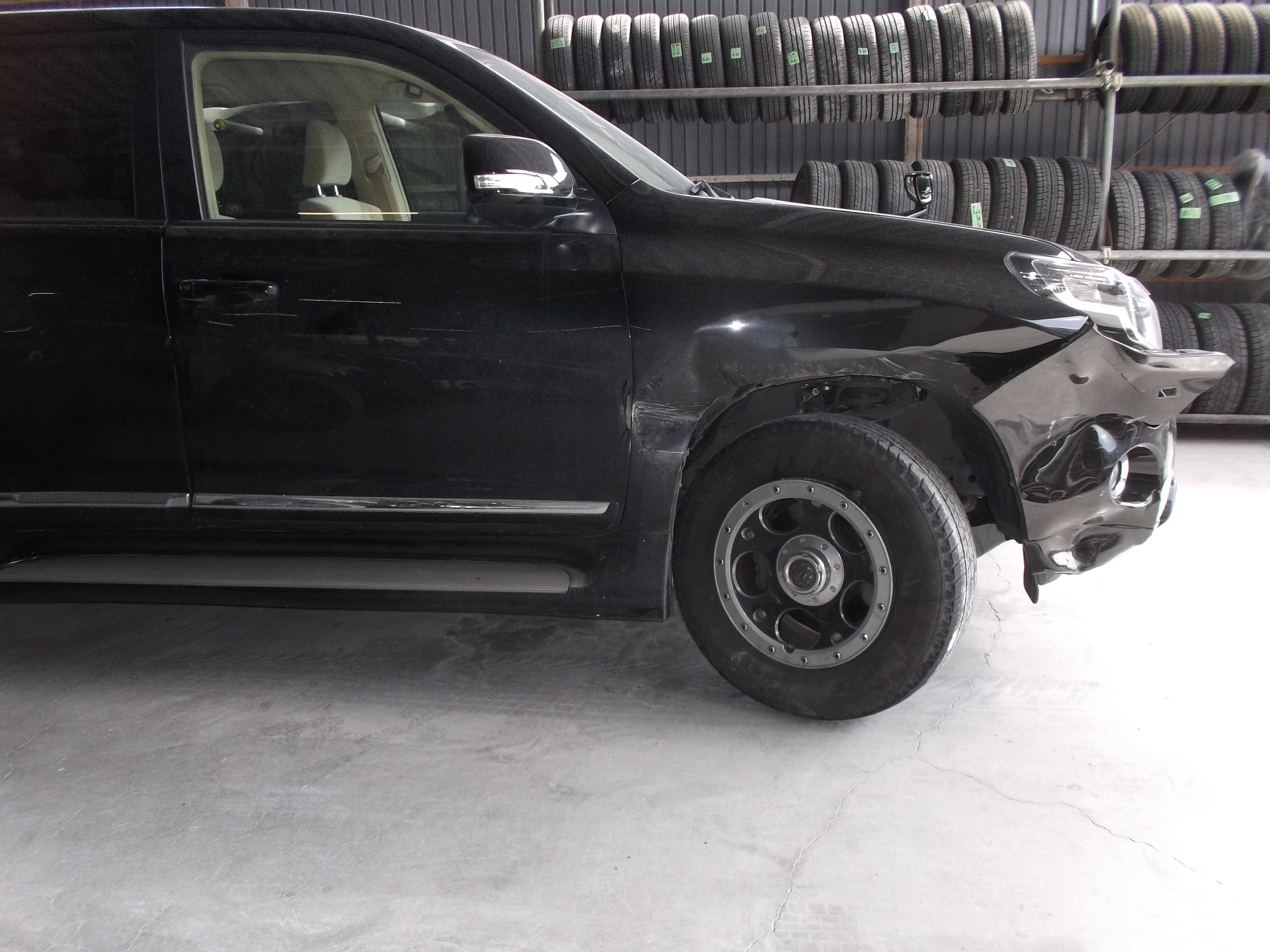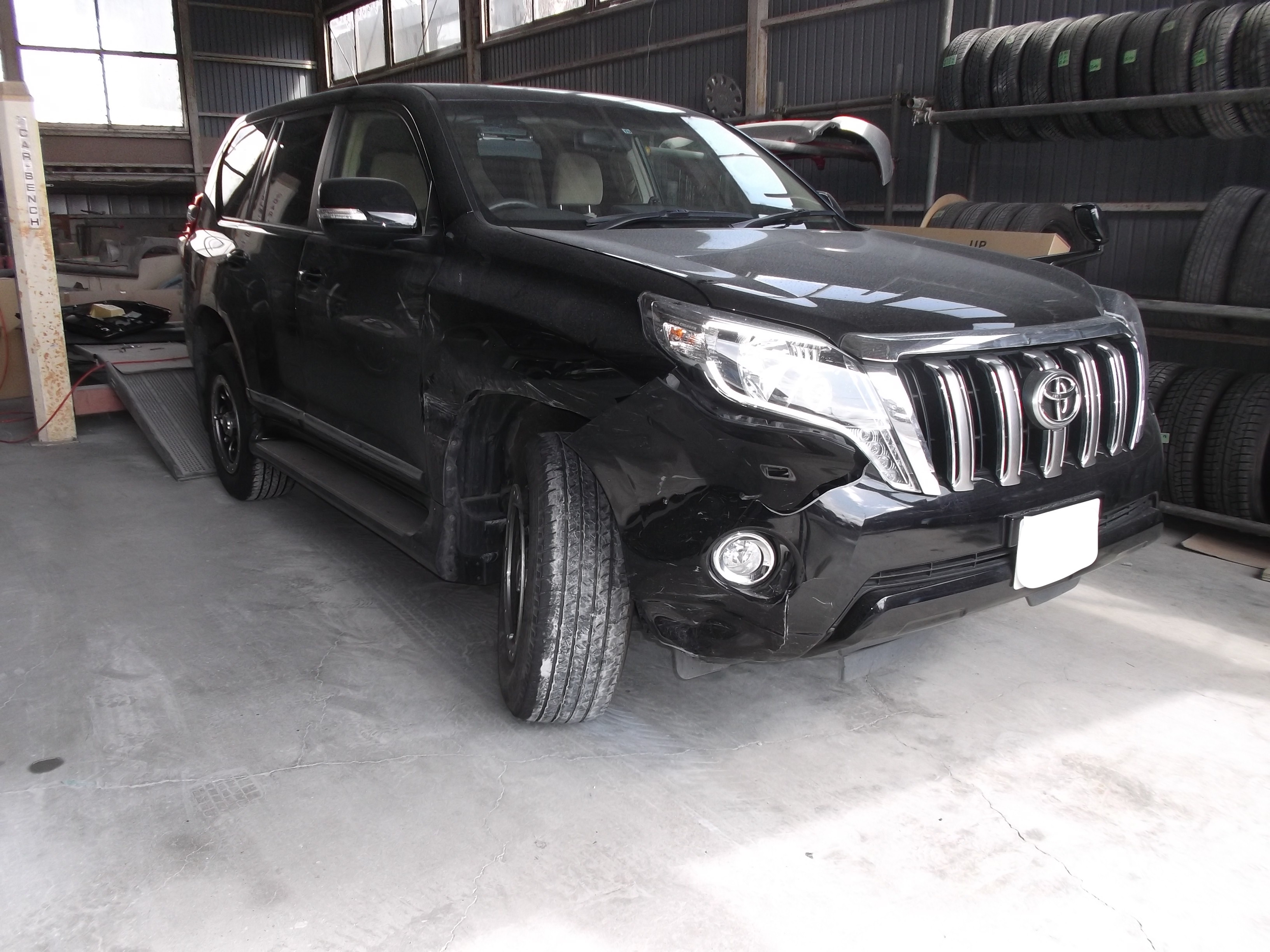 【ランクルプラド 保険修理】自走不可でレッカー引き取りからフロント足回り一式交換と鈑金塗装までワンストップ!