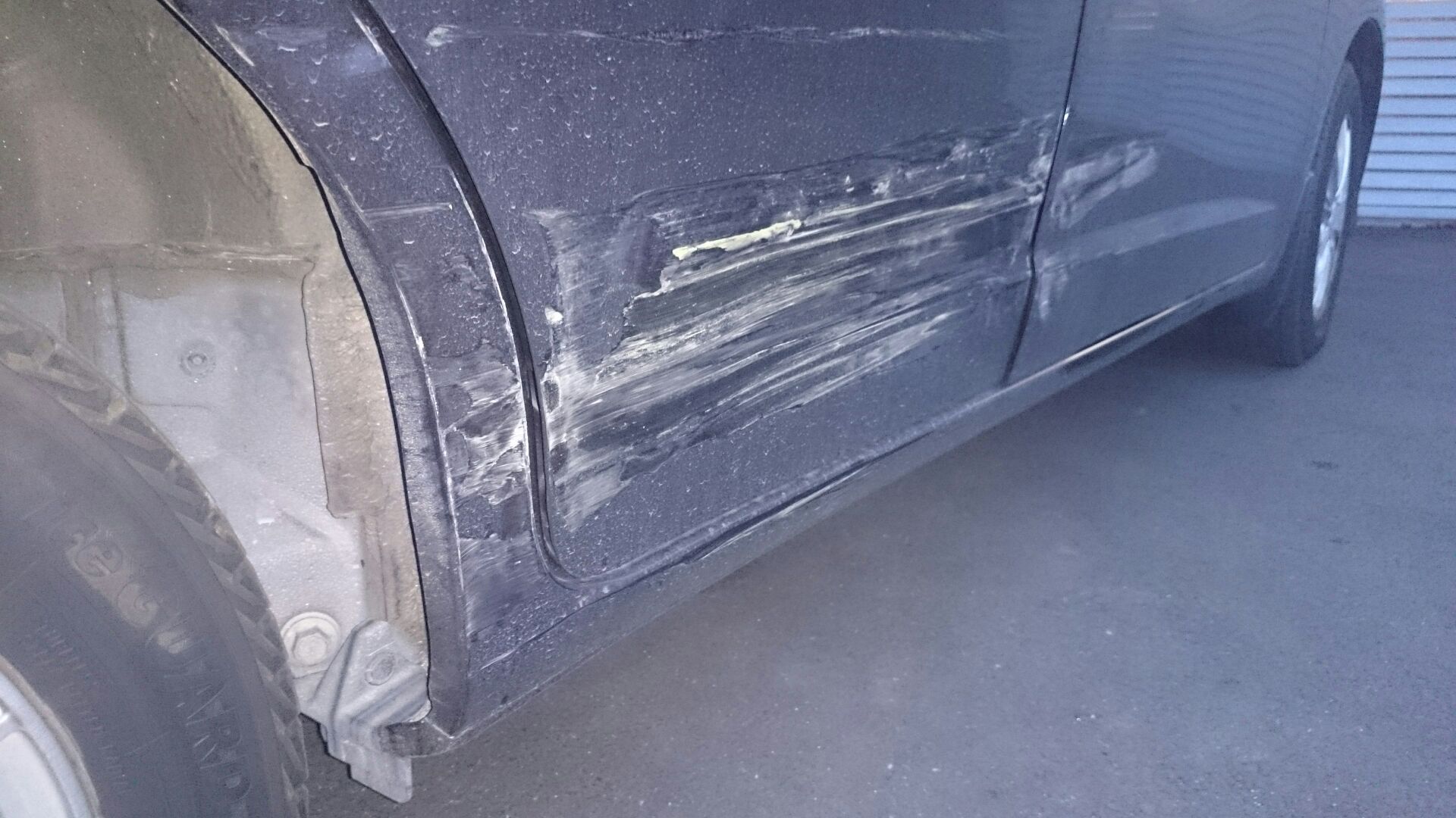 広範囲に及ぶキズ・へこみ修理でしたが、特に深刻だったのは、車体の強度を保つサイドシル(ロッカパネル)とリヤーホイールハウスの損傷です。これらの骨格に歪みが残ると、走行安定性や安全性が著しく低下します。 そのため、今回は損傷の激しいリヤドアとサイドシルの一部を交換し、クォーターパネルの歪みを修正するという、大掛かりな鈑金塗装を行いました。 もちろん、保険修理での対応も可能ですのでご安心ください。