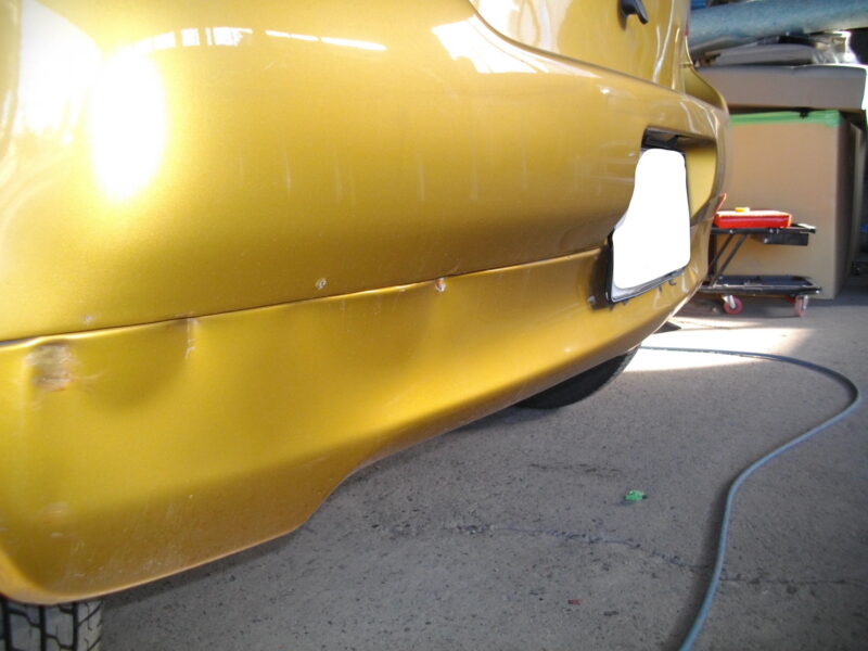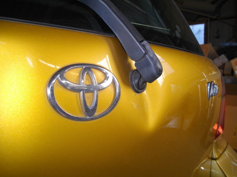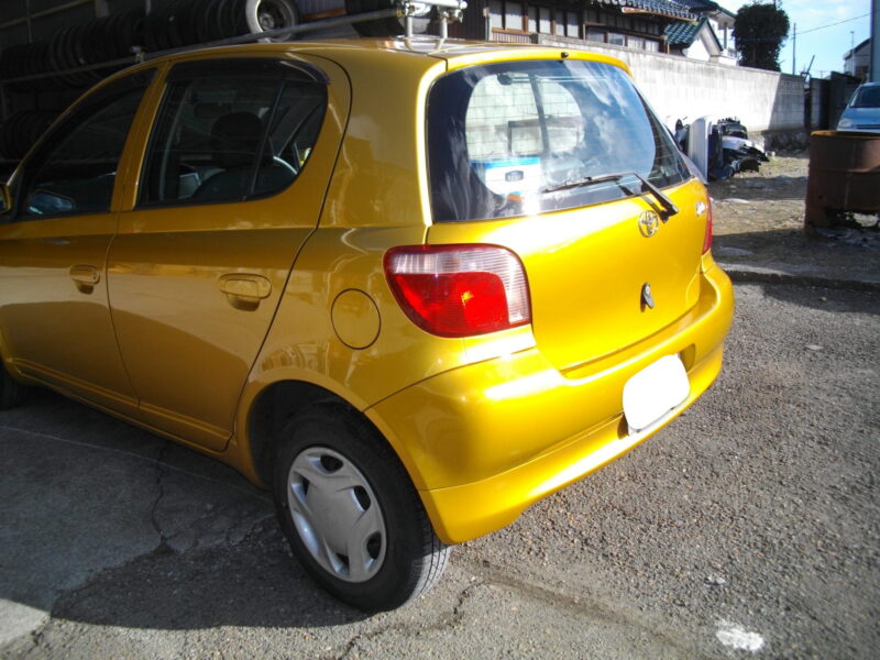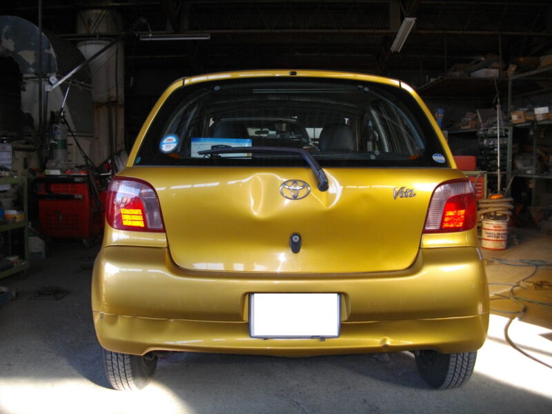 「事故の傷も元通りに」トヨタ・ヴィッツのリアバンパー&バックドア鈑金塗装を丁寧に実施