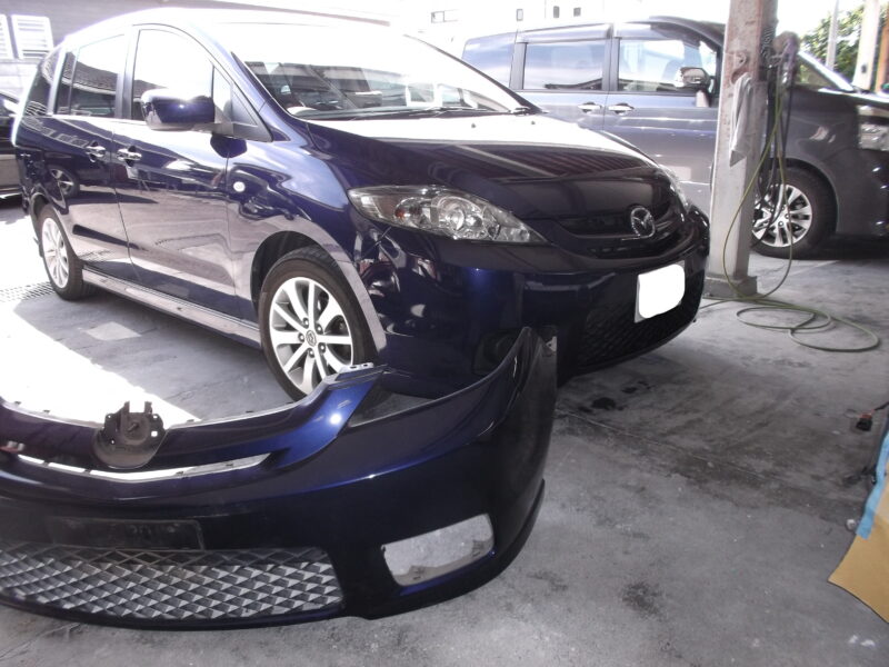 【伊勢崎市のお客様】マツダ プレマシーのキズ・へこみ修理|フロントバンパー交換!