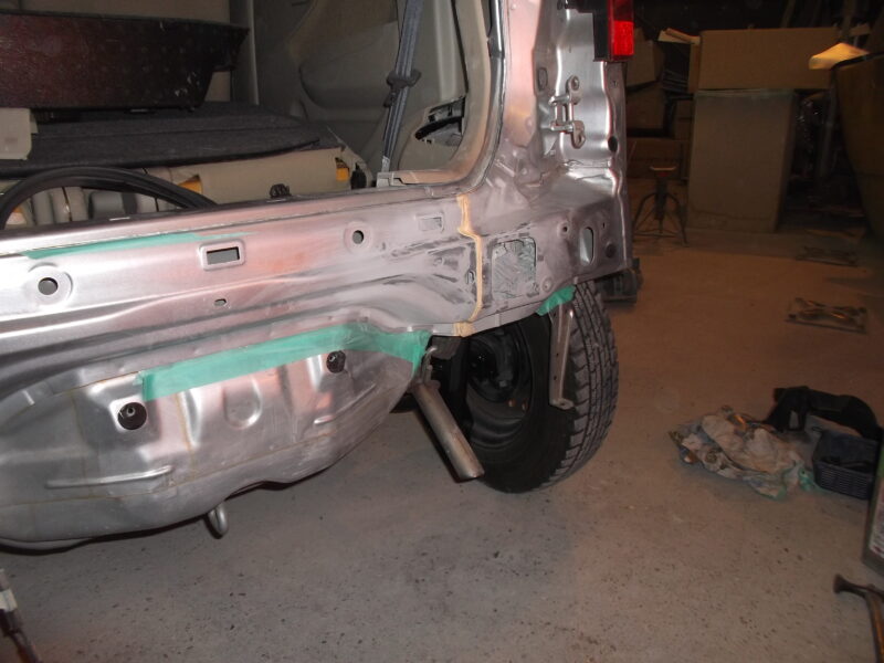 - バックドア交換: 損傷が激しいバックドアは新品に交換し、バックドアガラスを移植。