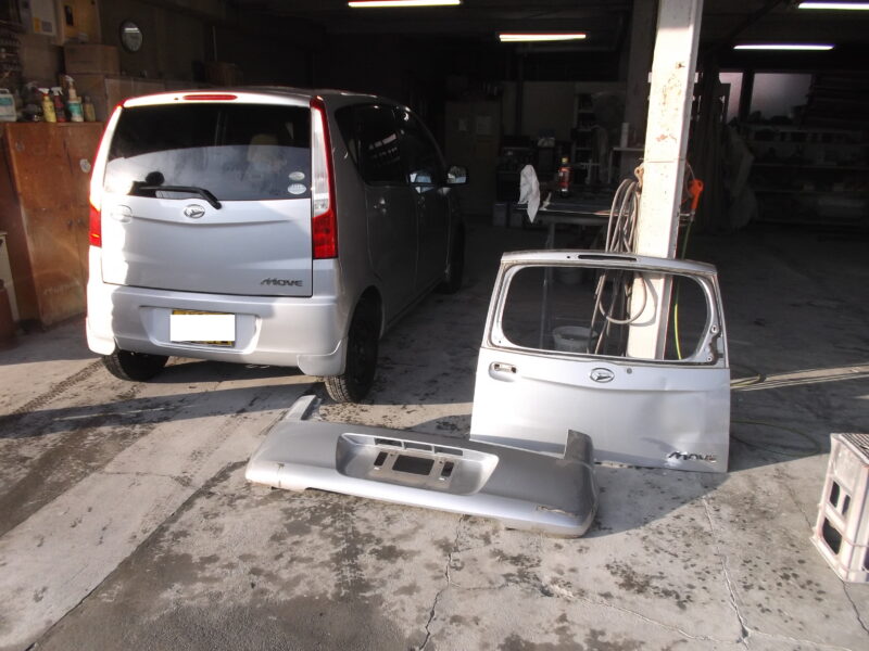 ムーヴのリアバンパー・バックドア交換とフレーム修復