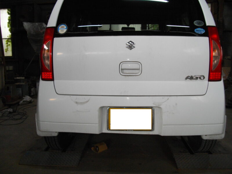 スズキ アルトの追突へこみ修理|バックドア修正とリヤスカートパネル鈑金で費用を抑えた復元