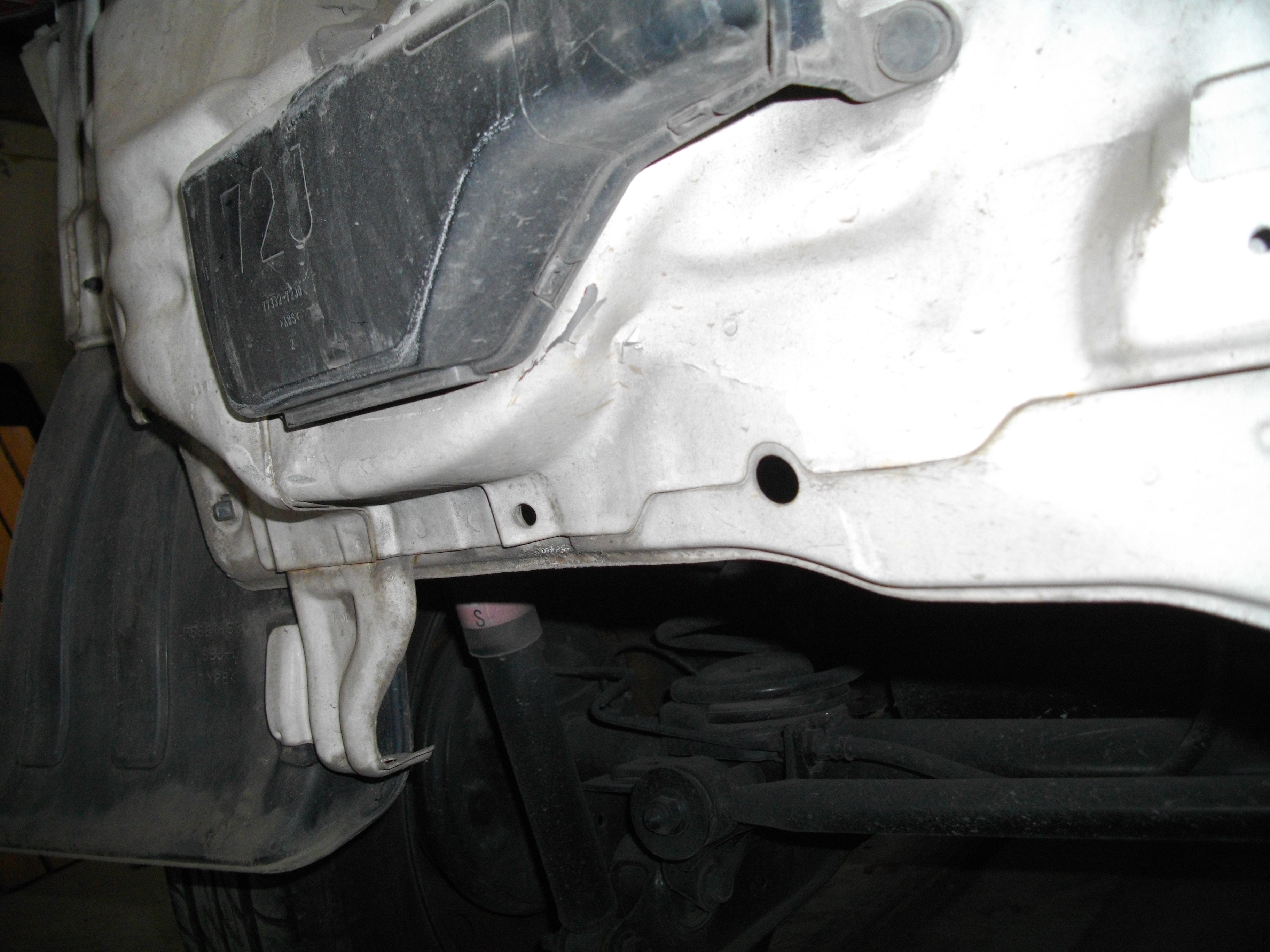 損傷したリヤバンパーを取り外し、バックドアを開けて内部のリヤスカートパネル(骨格)のへこみを確認します。専用工具を使い、見えない骨格部分の歪みを丁寧に修正。この作業が、修理後の車 修理品質を左右します。