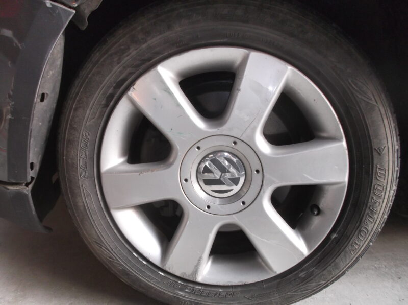 お客様のトゥーランを入庫後、フロントバンパー、左フロントフェンダー、左フロントドア、左前ホイールの損傷箇所を細かく確認します。小さな凹みや傷、フレームの歪みまで見逃さず、安全性と仕上がりの両立を最優先にチェックします。