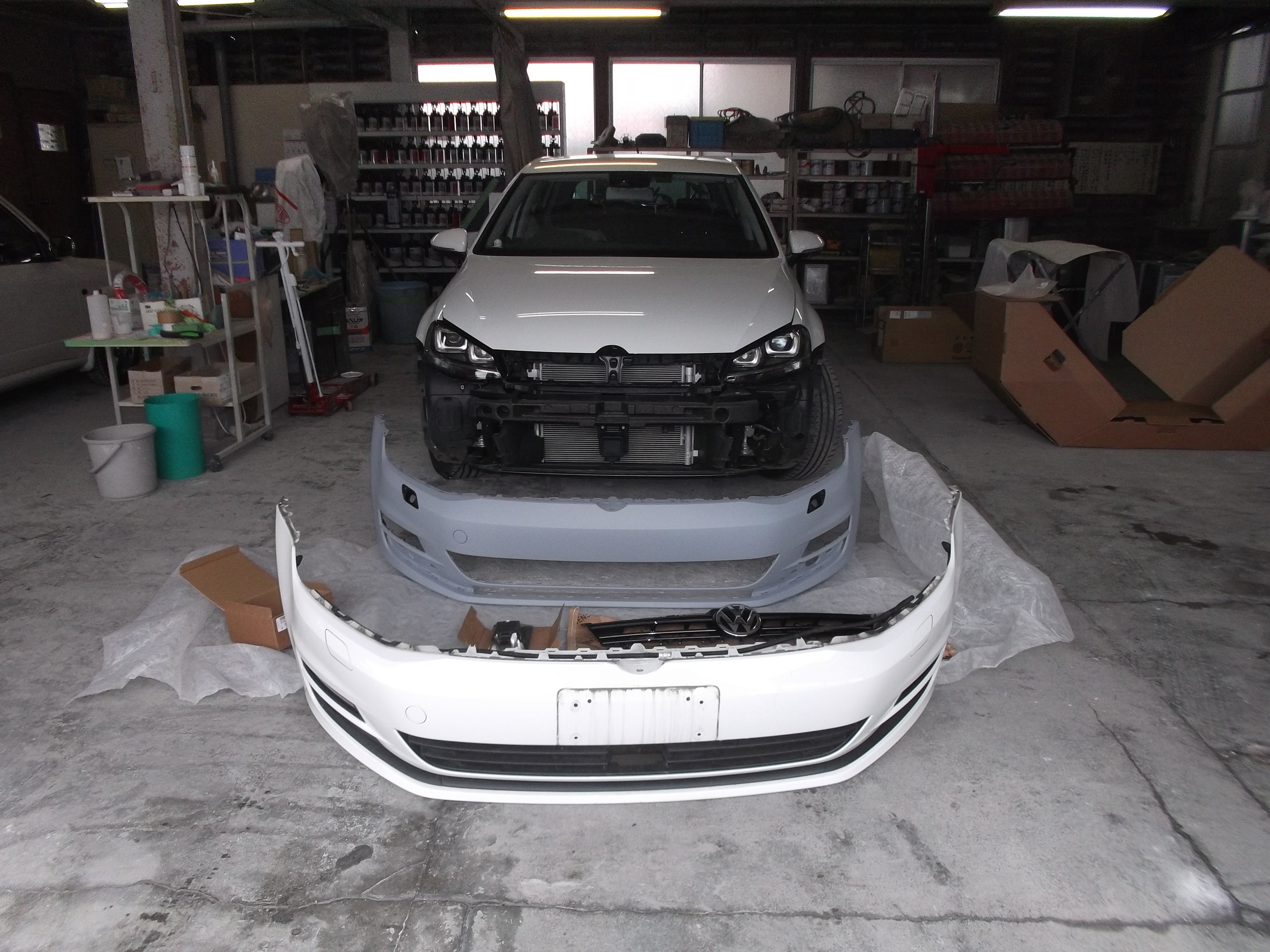 【外車 板金塗装】ワーゲン・ゴルフのフロントバンパー交換|桐生市でVWのキズ・へこみは山幸へ!