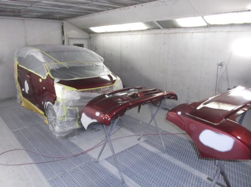 今回は、フロント・リアバンパー脱着・修理、ドアやフェンダーの鈑金、2コートパール塗装で仕上げました。