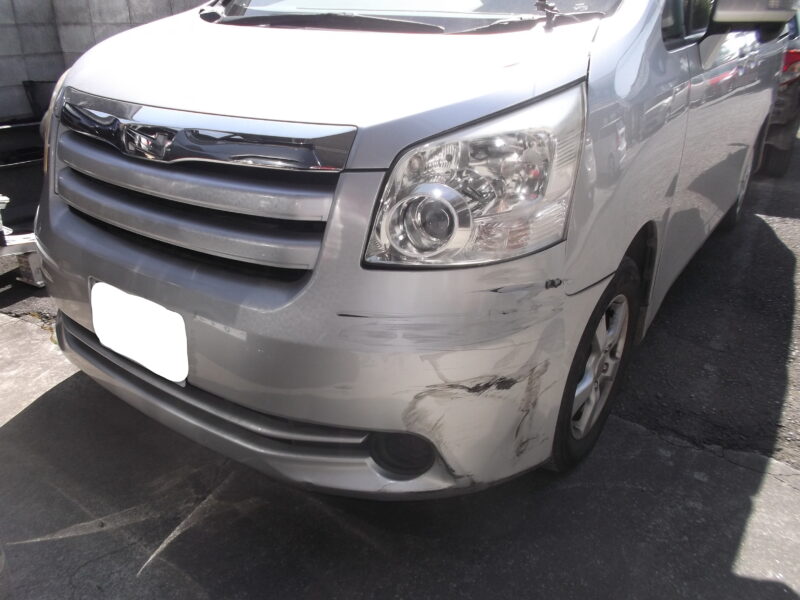 「愛車のフロントも元通りに」トヨタ・ノアのバンパー&ヘッドランプ修理