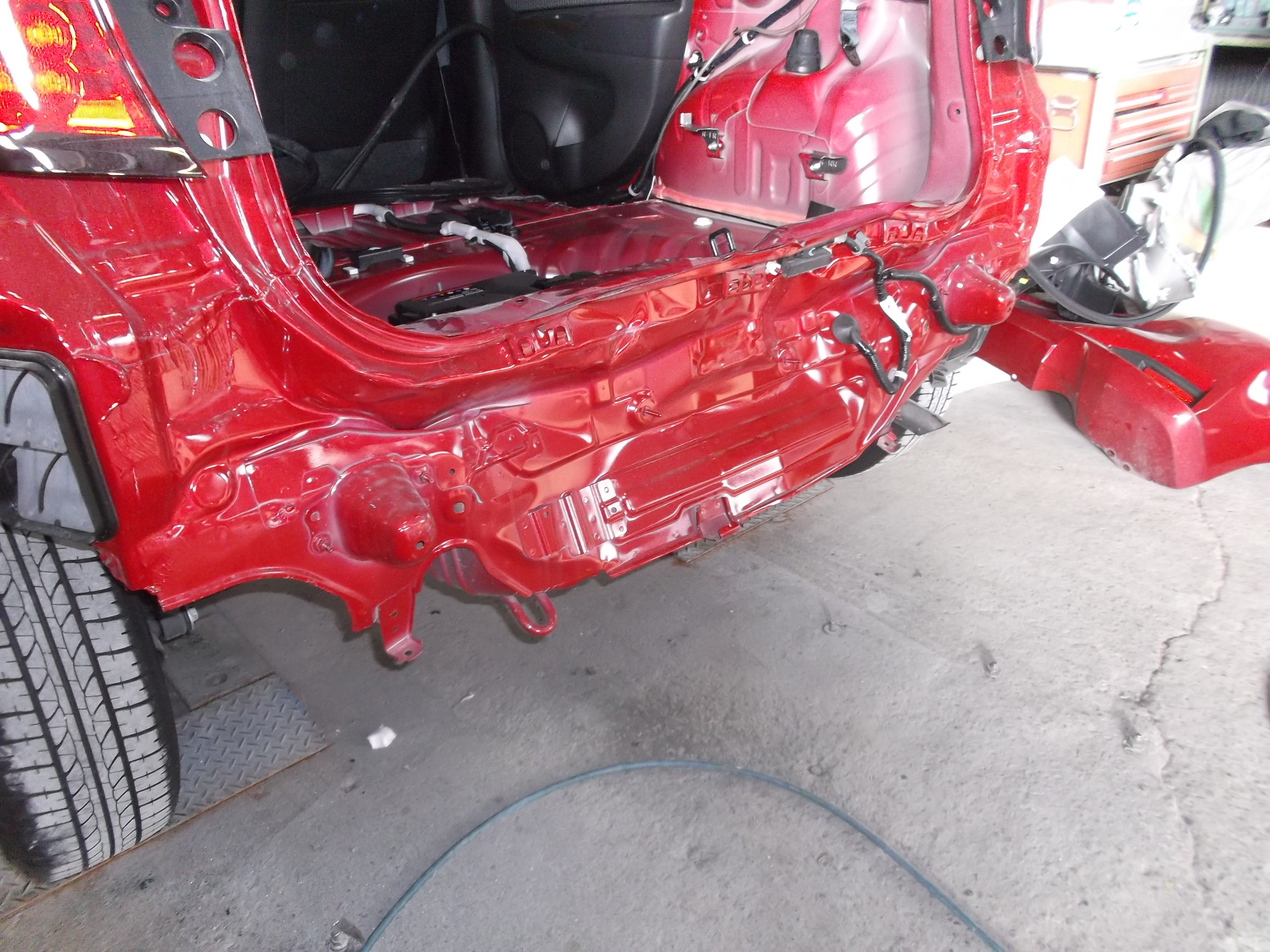 - 骨格修正: 左右サイドリヤメンバ、バックピラーレインフォースメントを鈑金修正。
