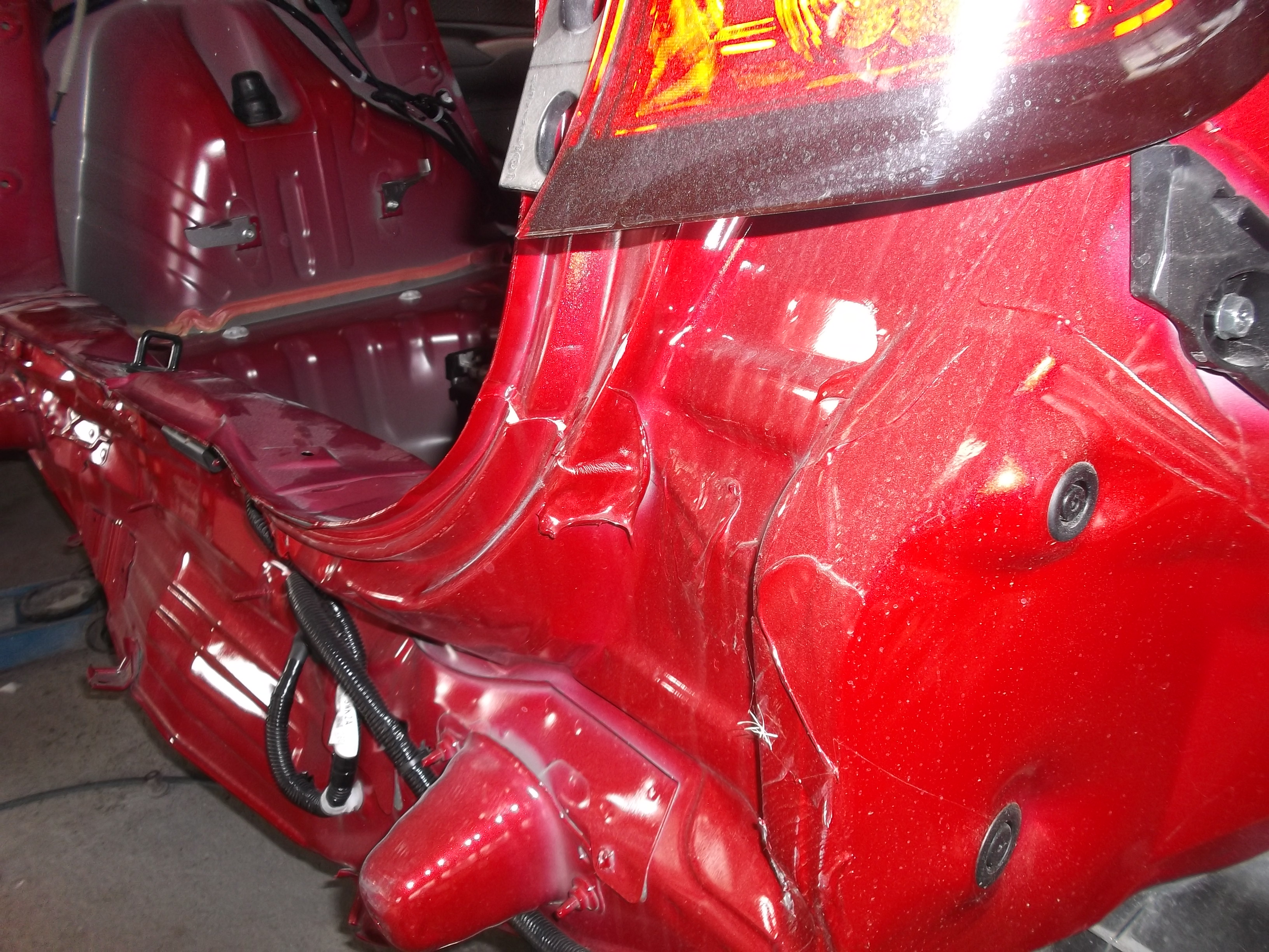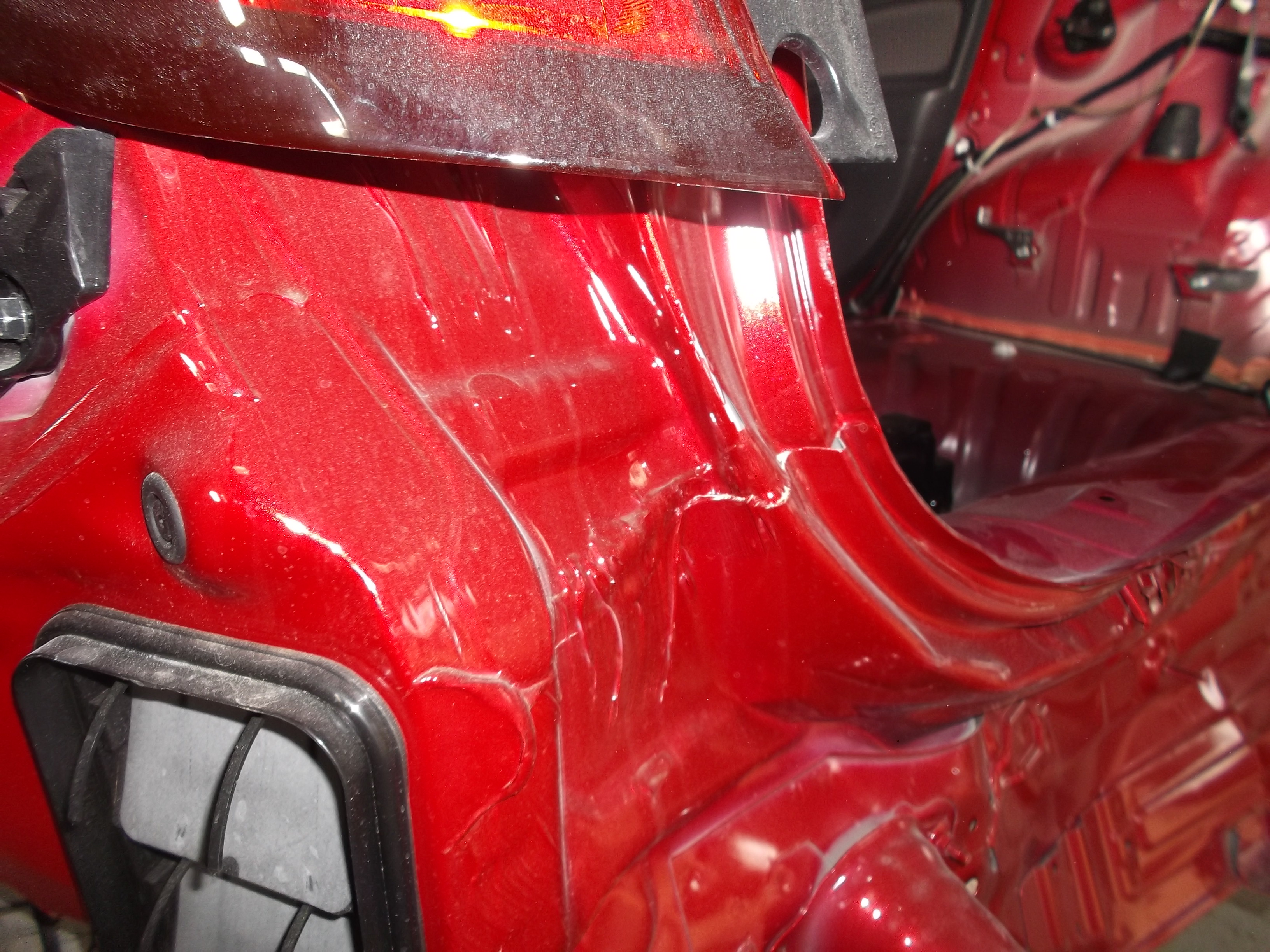 - 広範囲鈑金: 左右リヤフェンダー(クォーターパネル)のへこみ修理。