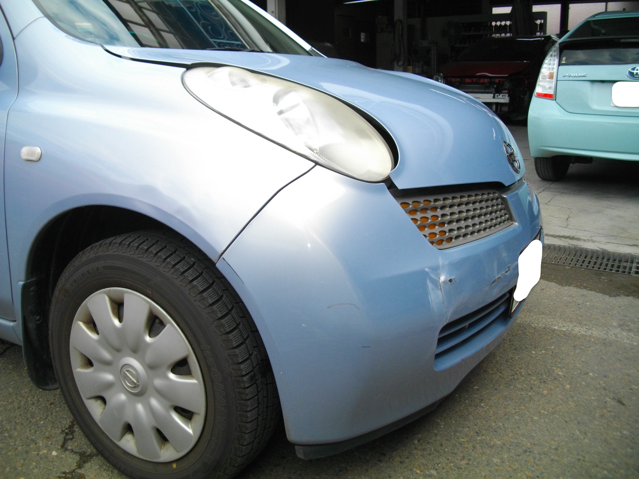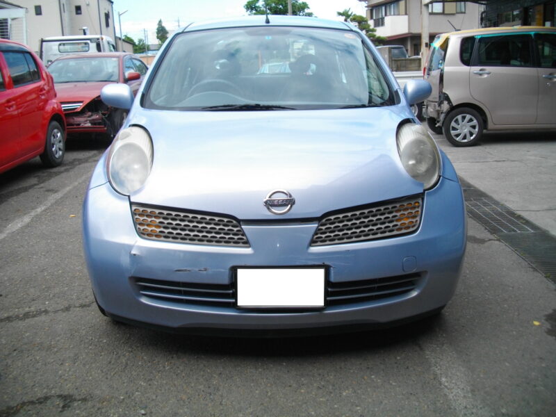 マーチのフロントを修復|フード・バンパー交換から内部ステー・コンデンサーまで。骨組みから直す板金塗装