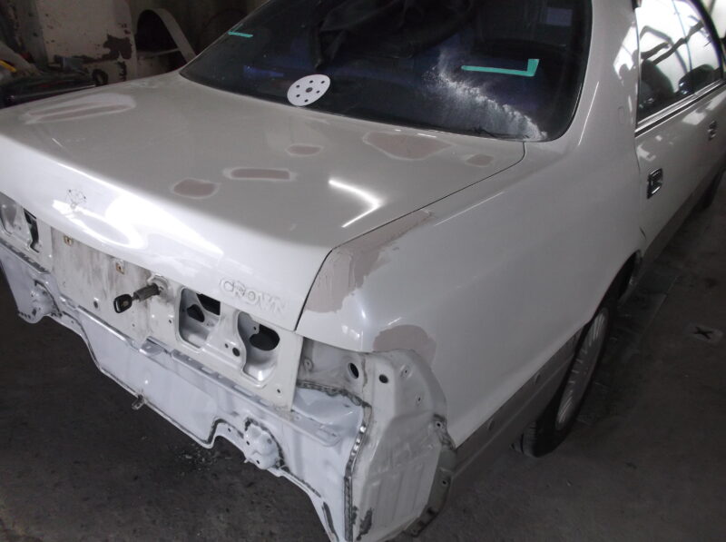 【板金塗装・車ヘコミ修理】クラウン|リヤバンパー交換+左右クォーターパネル修理・中古部品活用