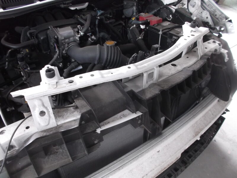 損傷部位のバンパー・フェンダー・ヘッドランプを慎重に取り外します。周囲の部品や塗装面を傷めないよう養生を行い、修理の準備を整えます。