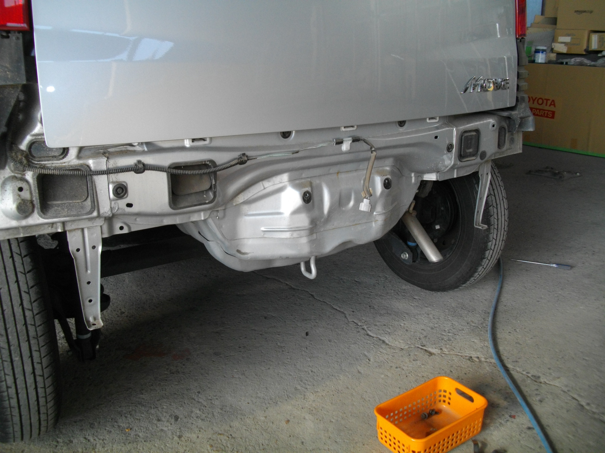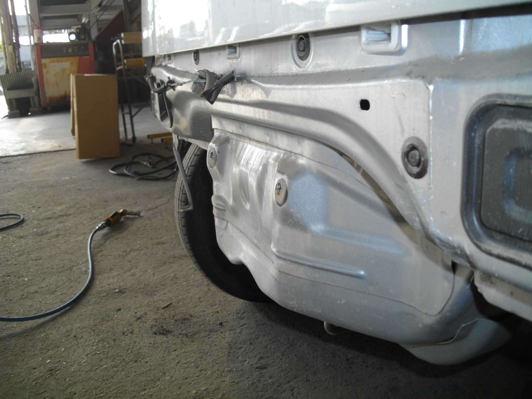 3. 部品発注・分解作業: リヤバンパーやロアパネルを外し、損傷箇所を確認・修正します。