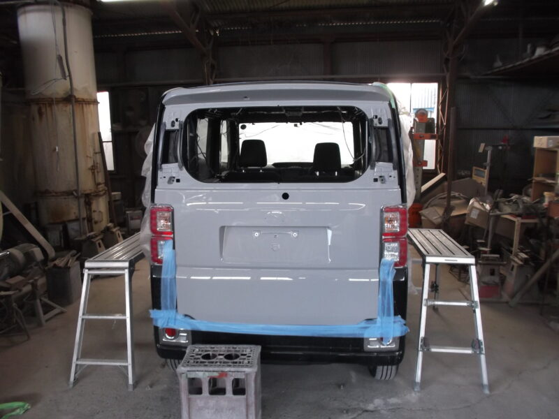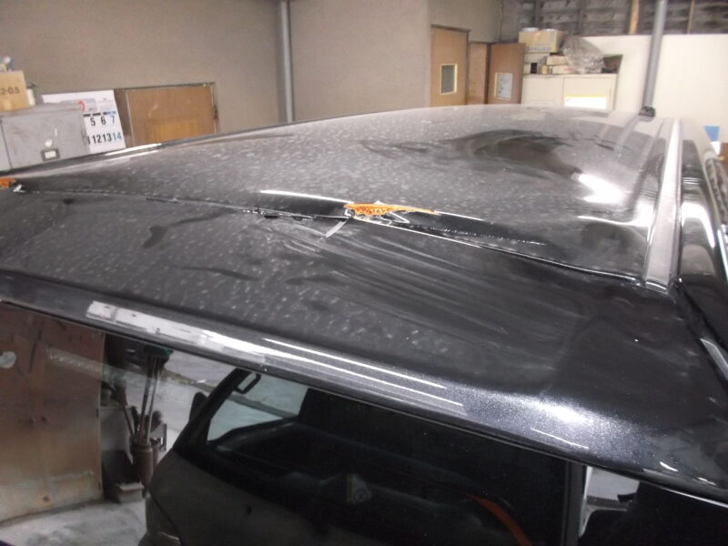 バックドアはパネル交換を選択し、左リヤクォータパネルやルーフは板金塗装で修復しました。