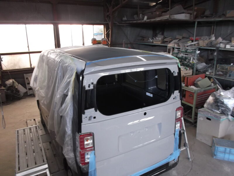 【桐生市・車 修理】|ダイハツ ウェイク リヤ周り・ルーフの板金塗装事例(バックドア・クォーターパネル・ルーフ)