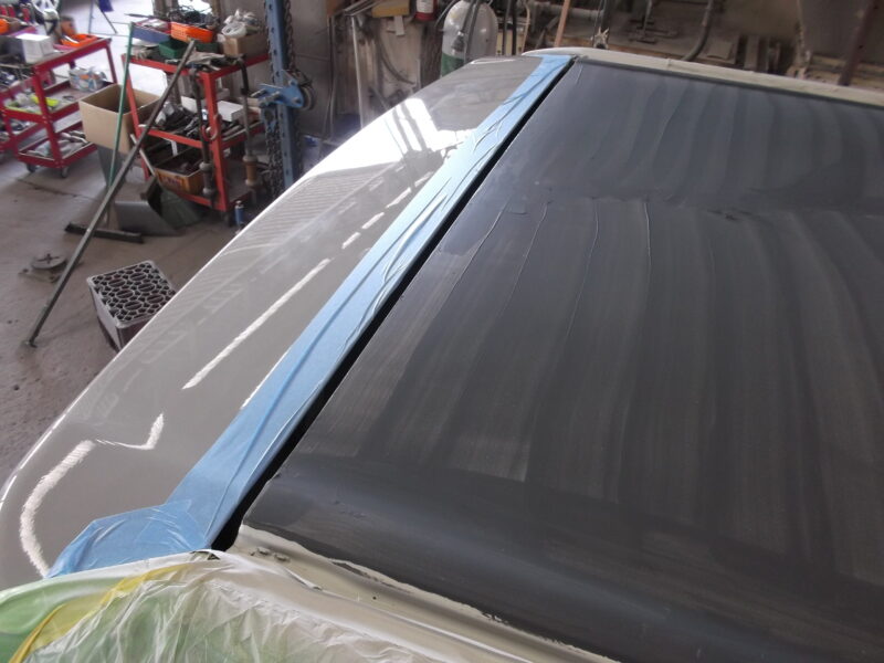 左リヤクォーターパネルやルーフパネル、バックドアオープニングフレームのへこみや変形を丁寧に修正。鉄板の歪みを整え、強度と形状を元の状態に復元しました。