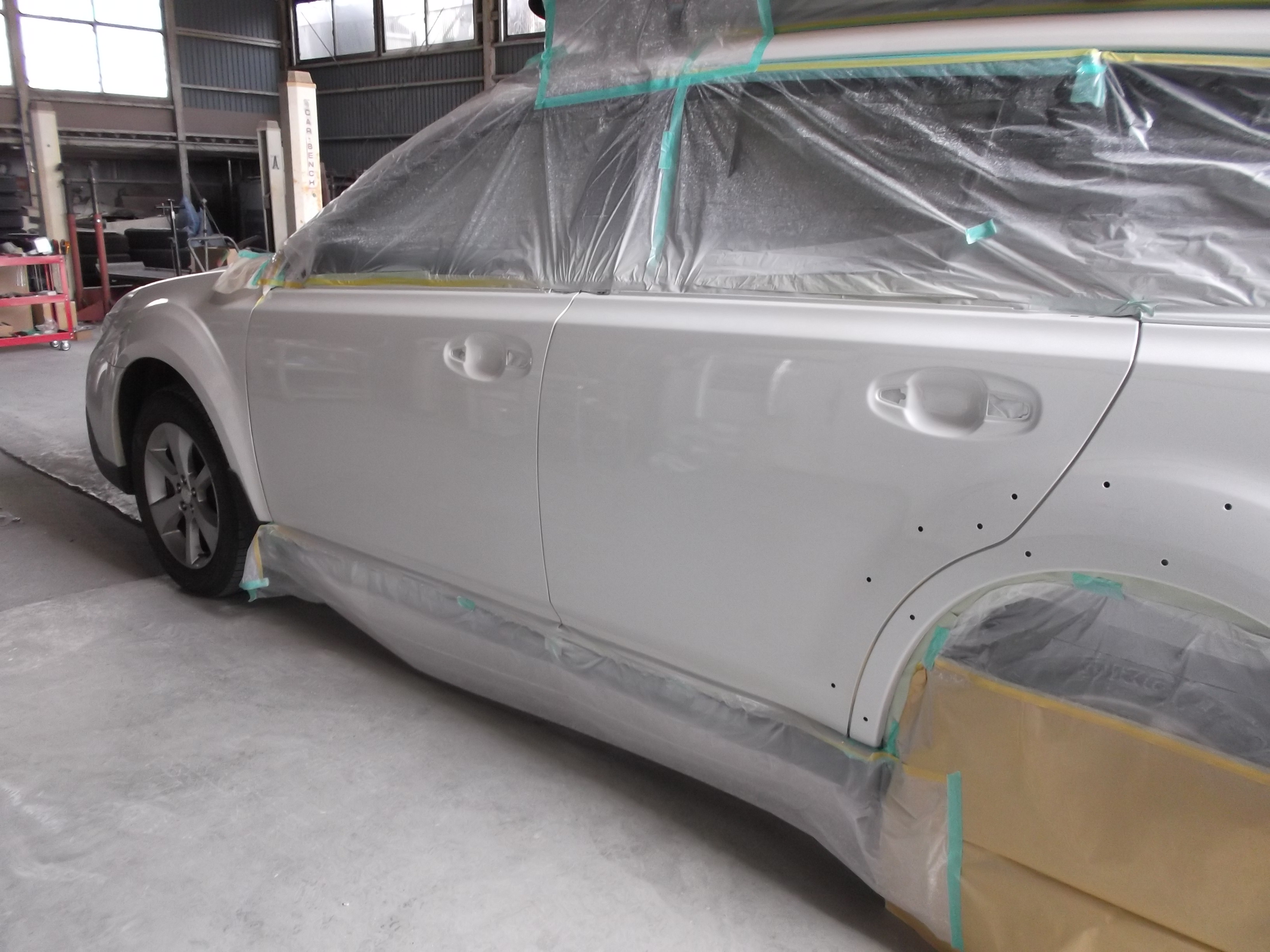 【桐生市 板金塗装】スバル・レガシィアウトバックの左側面キズ・へこみ修理を「耐スリ傷」高機能3コートパール塗装で復元!