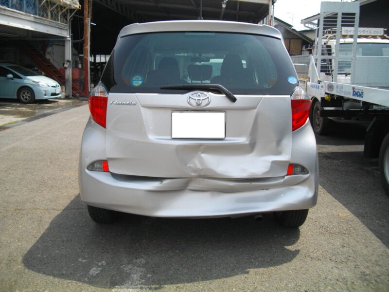 桐生市にお住まいのお客様より、トヨタラクティスのリヤ周り損傷についてご相談いただきました。まずは現車を確認し、保険修理で対応できる範囲や修理方法、費用について丁寧にご説明しました。