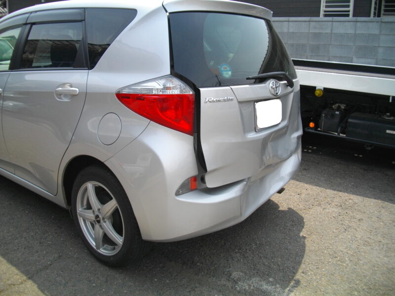 【桐生市 板金塗装】トヨタラクティス リヤバンパー&バックドア部品交換・保険修理事例
