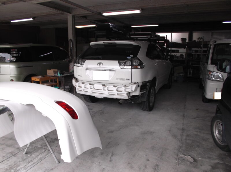 【桐生市 車キズ修理】トヨタ・ハリアー リヤバンパー脱着+板金塗装&部品交換修理事例