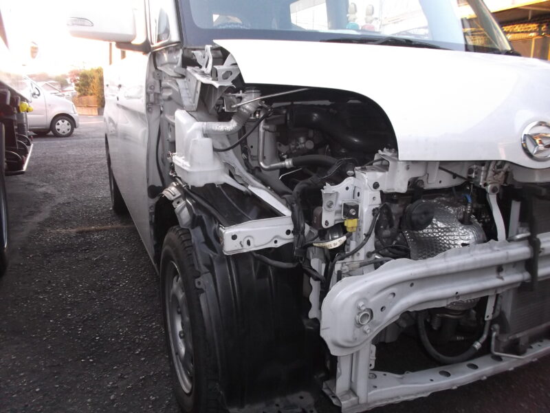 桐生市のお客様のダイハツ タントは、フロントフェンダーやバンパー、サイドサポートなど複数箇所に損傷がありました。