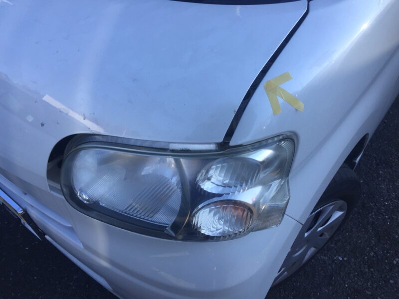 【車のへこみ修理】桐生市|ダイハツ タントのフロントフェンダー・バンパー修理事例