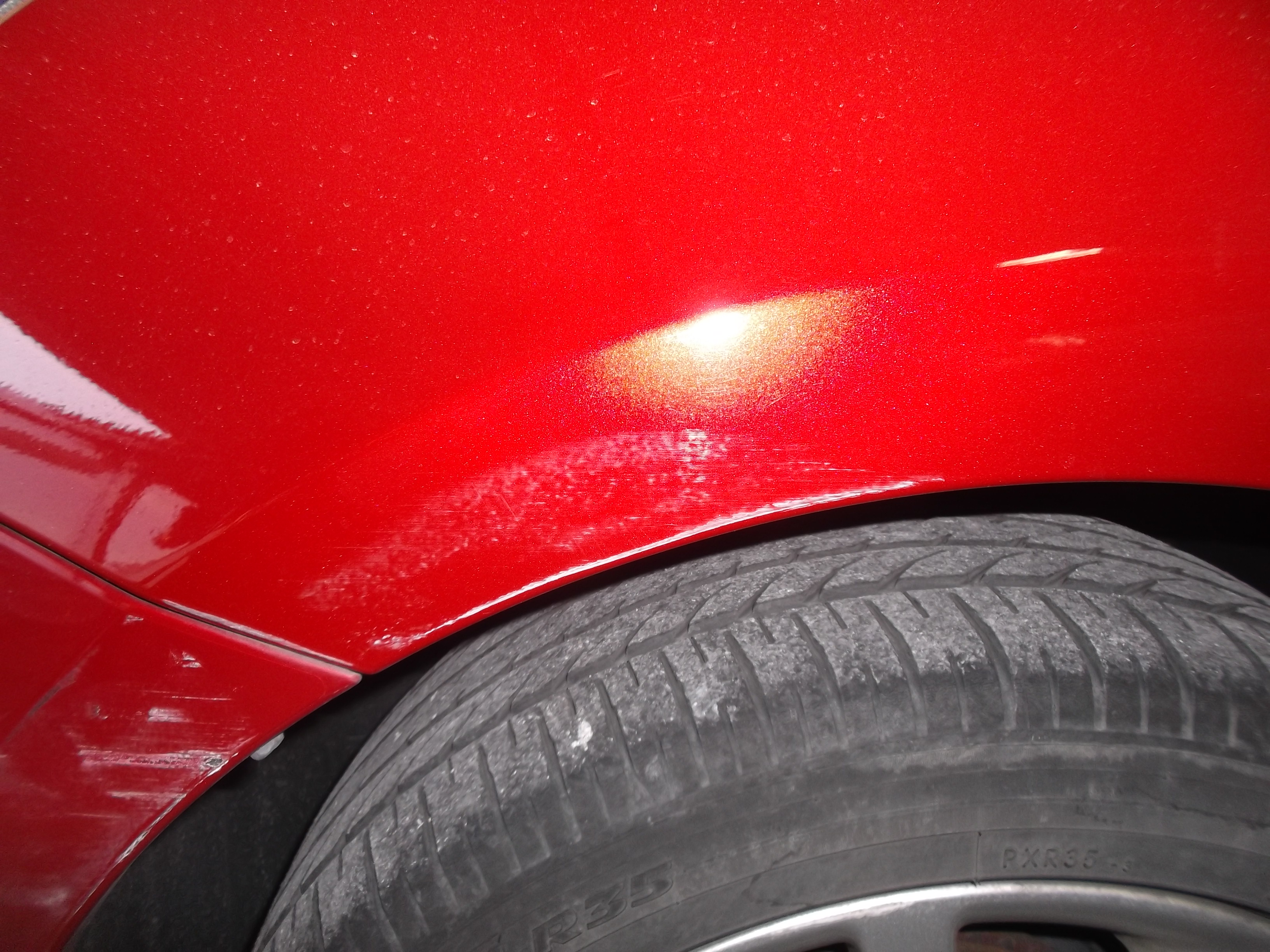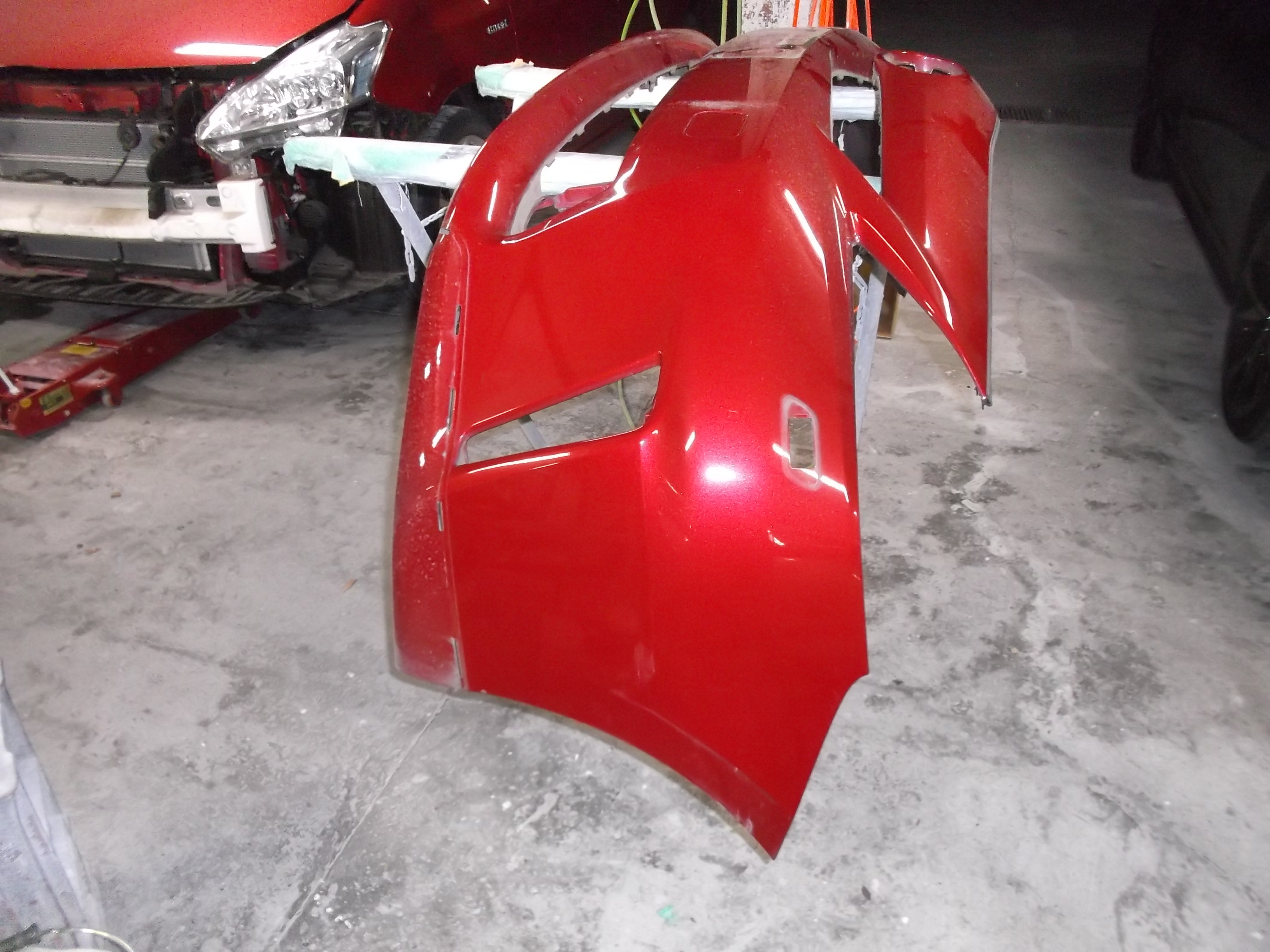 フロントバンパー脱着、フェンダー板金処理、塗装(2K・2コートパール)で自然な仕上がりに。隣接パネルとの色差も調整します。