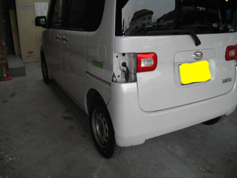 【車板金修理】伊勢崎市のお客様|ダイハツ・タント クォータパネル・リヤバンパー修理