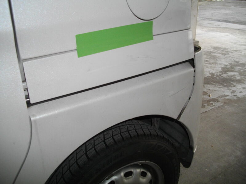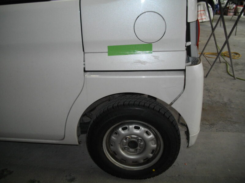 伊勢崎市のお客様より、ダイハツ・タントのクォータパネルとリヤバンパーの鈑金修理のご依頼をいただきました。