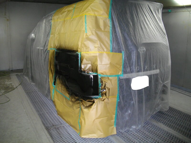 専用ブースでホコリを遮断し、元のボディカラーに合わせて塗装。最後にクリア塗装を重ね、艶やかで自然な仕上がりに仕上げます。