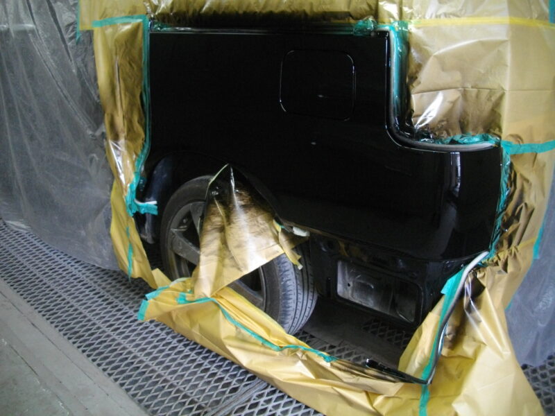 塗装はクォーターパネル全面を修正した上で、耐スリ傷性クリヤーを使用し、美しく耐久性の高い仕上がりにしています。