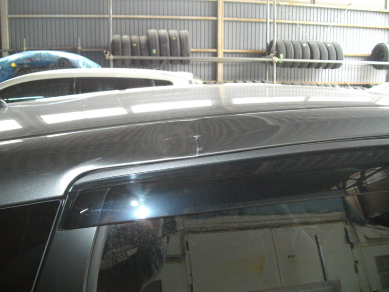 まずはお車の状態を細かくチェック。左リヤドアやフェンダーの凹み・キズ、サイドウインドガラスやサッシュの損傷を確認し、必要な部品と修理内容をお客様にわかりやすくご説明しました。