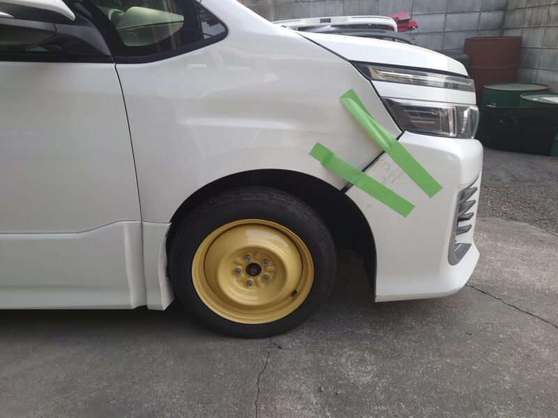 【車 修理】太田市|トヨタ ヴォクシーのフロント周り修理(バンパー・フェンダー・足回り)のご依頼をいただきました!