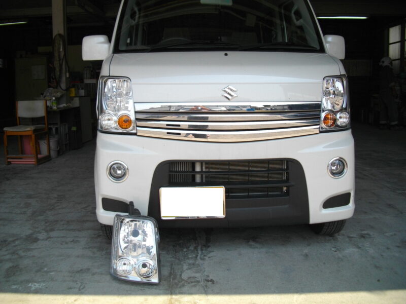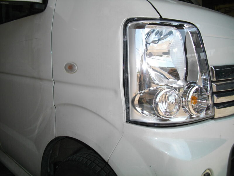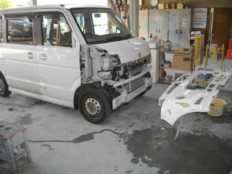 【車 修理】桐生市|スズキ エブリィワゴンのフロントフェンダー・フード修理を保険対応